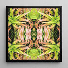 Der Centre Stage Schwimmer gerahmte Leinwand entfaltet sich vor Ihnen wie eine Wüstenfata Morgana, seine symmetrische Pracht ein Zeugnis für die verborgene Ordnung der Natur. Dieser kaleidoskopische Kaktusgarten, dargestellt in lebhaften Chartreuse- und Lachstönen, lädt Sie ein, sich in seinem fraktalen Labyrinth zu verlieren. Jeder psychedelische Stachel und Areole, vervielfacht und gespiegelt, erzeugt ein hypnotisches Muster, das vor Leben pulsiert und die Widerstandsfähigkeit der Wüstenflora widerspiegelt.
