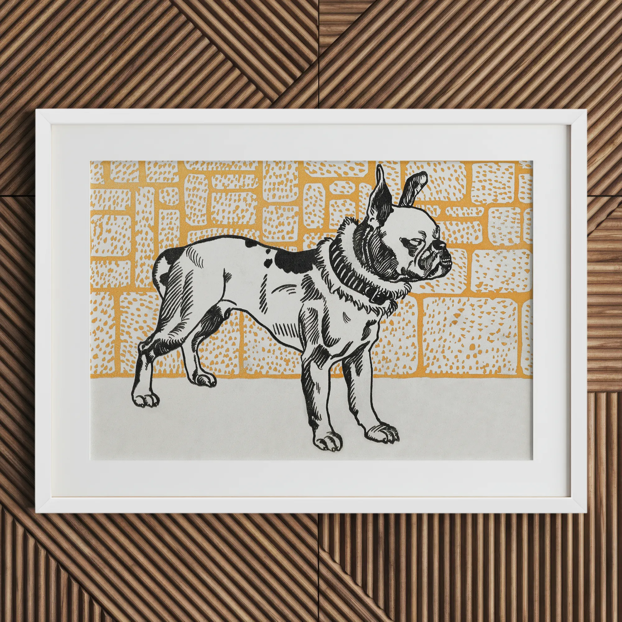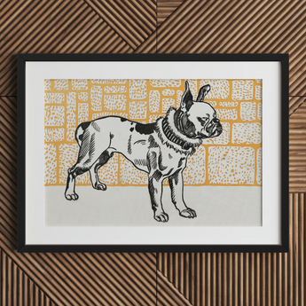 Investieren Sie in diesen seltenen Einblick in modernistische Meisterschaft, wo Jungs einfühlsame Darstellung einen Pitbull in ein unvergessliches künstlerisches Statement verwandelt.