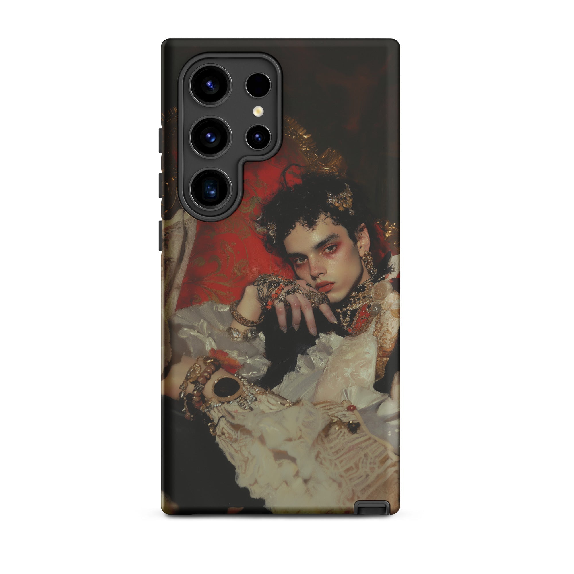 Dieser seltsame Vampirkönig ist kein blasser Geist der Antike. Er ist der fiebrige Puls unsterblicher Dekadenz, gehüllt in Brokat, Spitze und den Duft von verschüttetem Granatapfelwein. Ihr Samsung wird zu seinem Hof, jeder Blick auf Ihr Gehäuse ein Aufruf, seine Herrschaft zu betreten. Hier ist die Zeit weder linear noch gnädig; sie windet sich, wartet und trinkt Sie langsam, hinterlässt nur den Geschmack der Ewigkeit auf Ihrer Zunge.