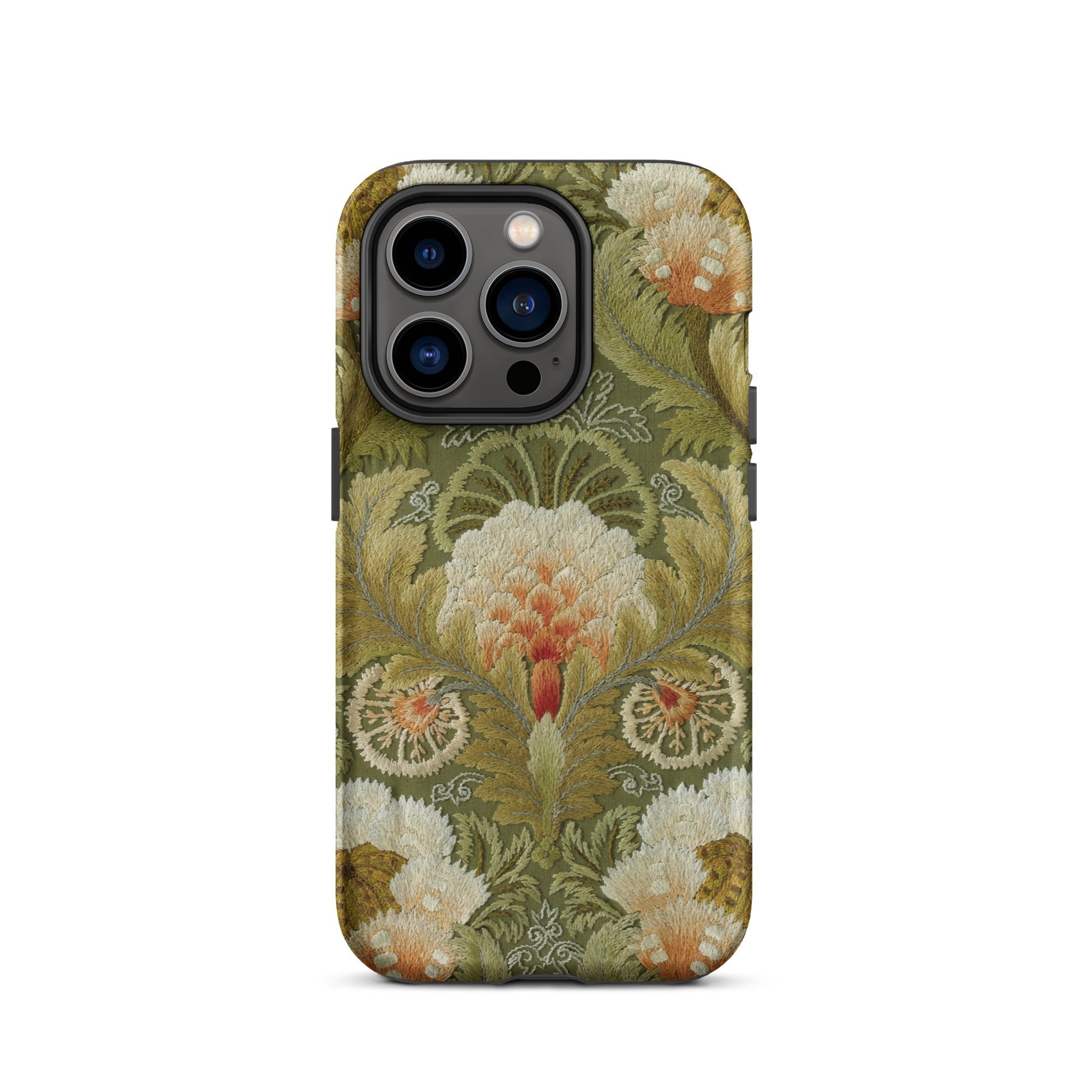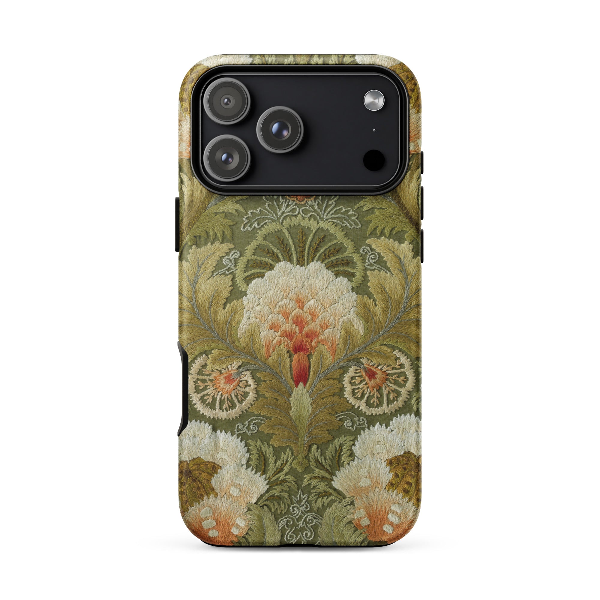 Seidenstickerei mit Blumen und Blättern iPhone-Hülle