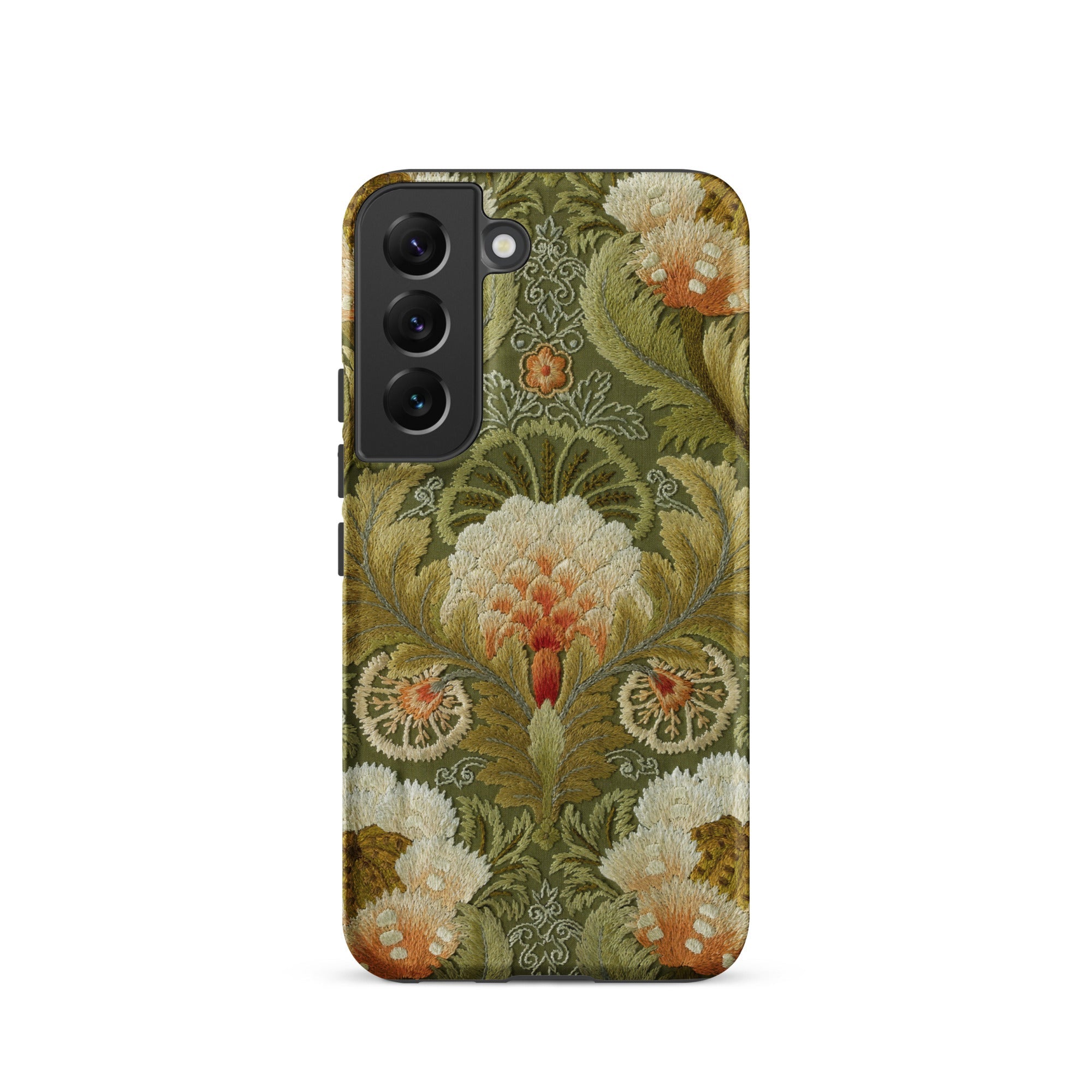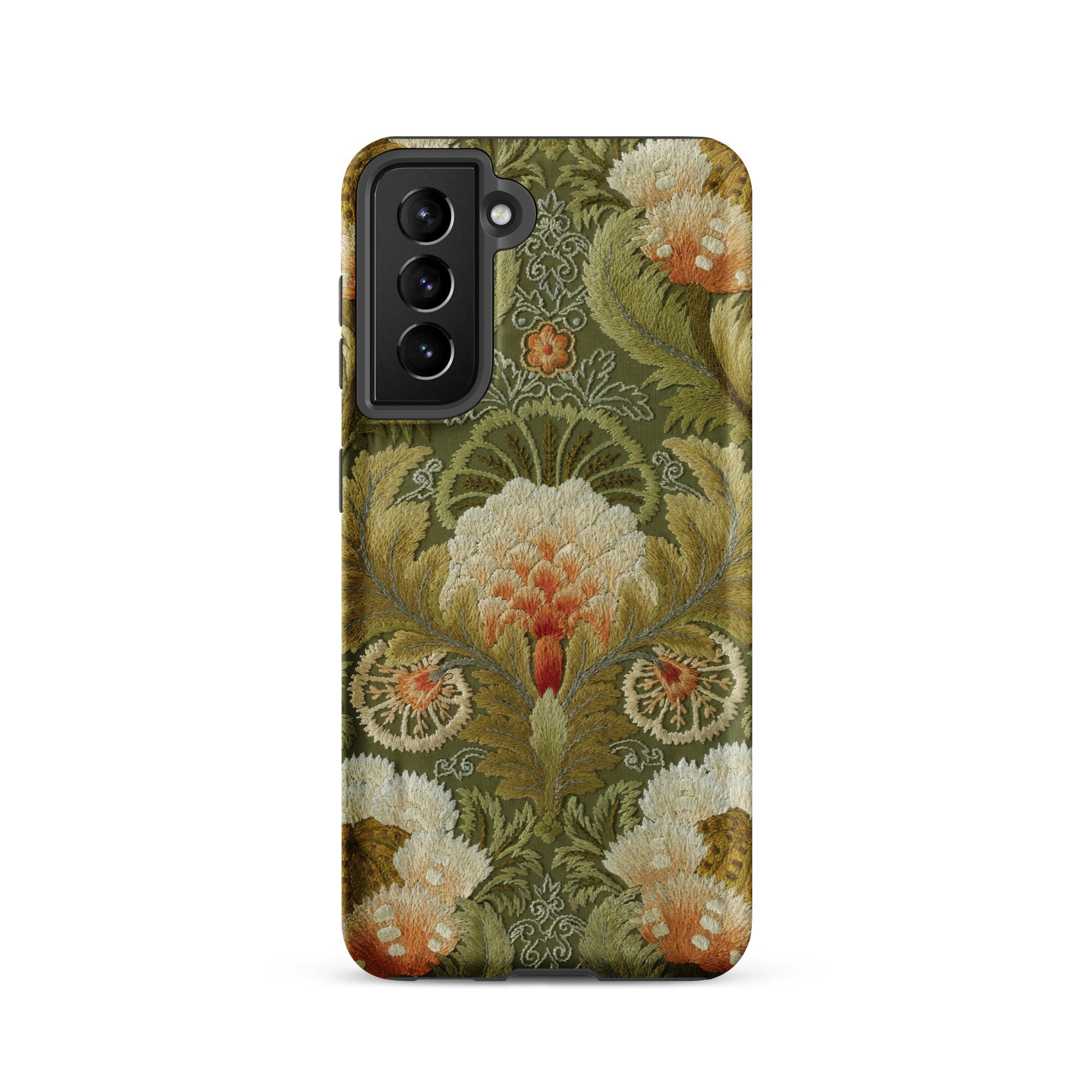 Ein tragbares Fragment der Textilgeschichte, dieses Samsung-Etui verbindet ornamentale Tradition mit zeitgenössischem Schutz und lässt Ihr Telefon weniger wie ein Objekt erscheinen und mehr wie ein Talisman beständiger Kunstfertigkeit.