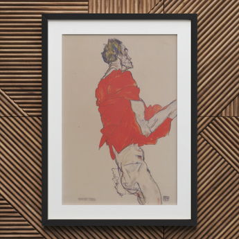 Selbstporträt in rotem Hemd - Egon Schiele Kunstdruck