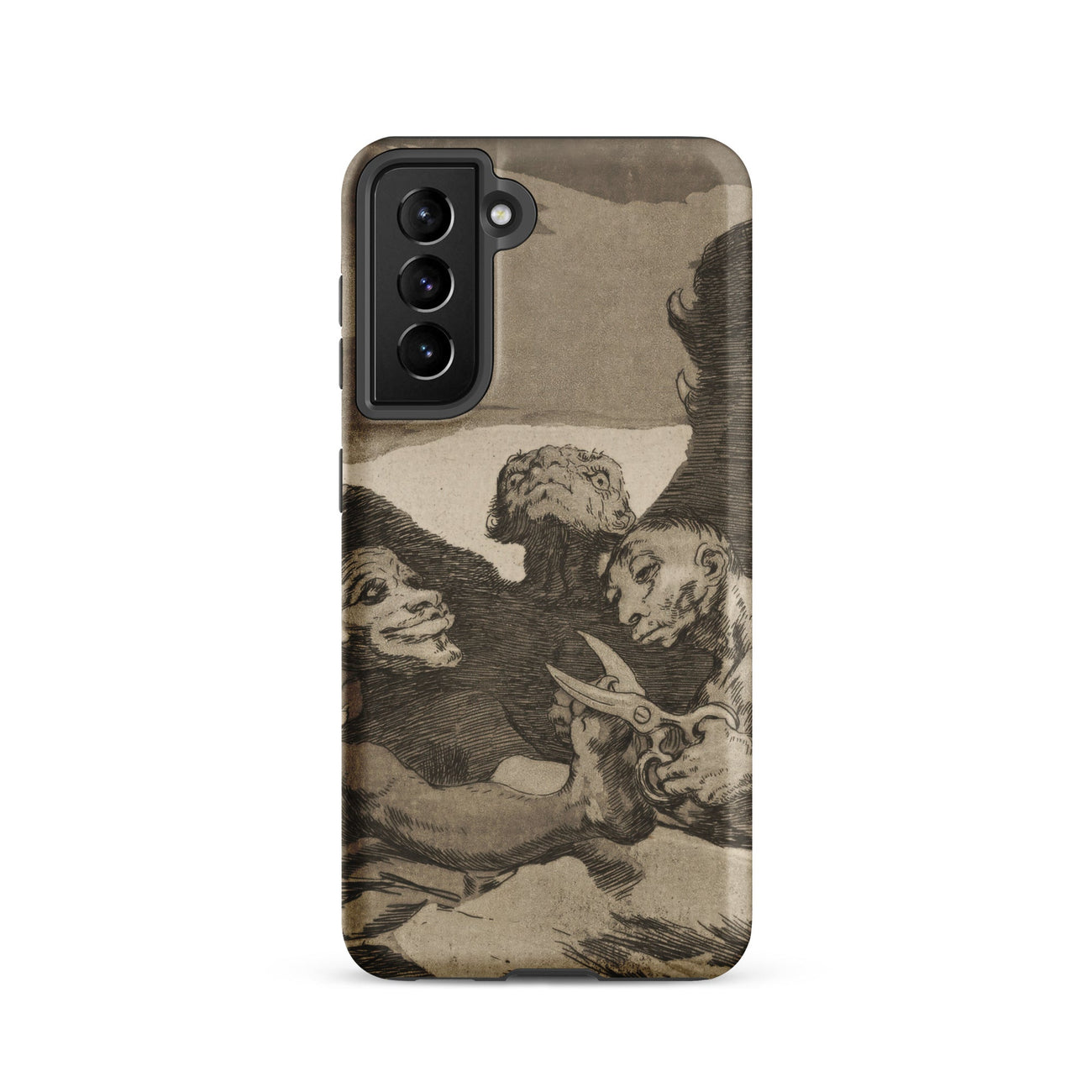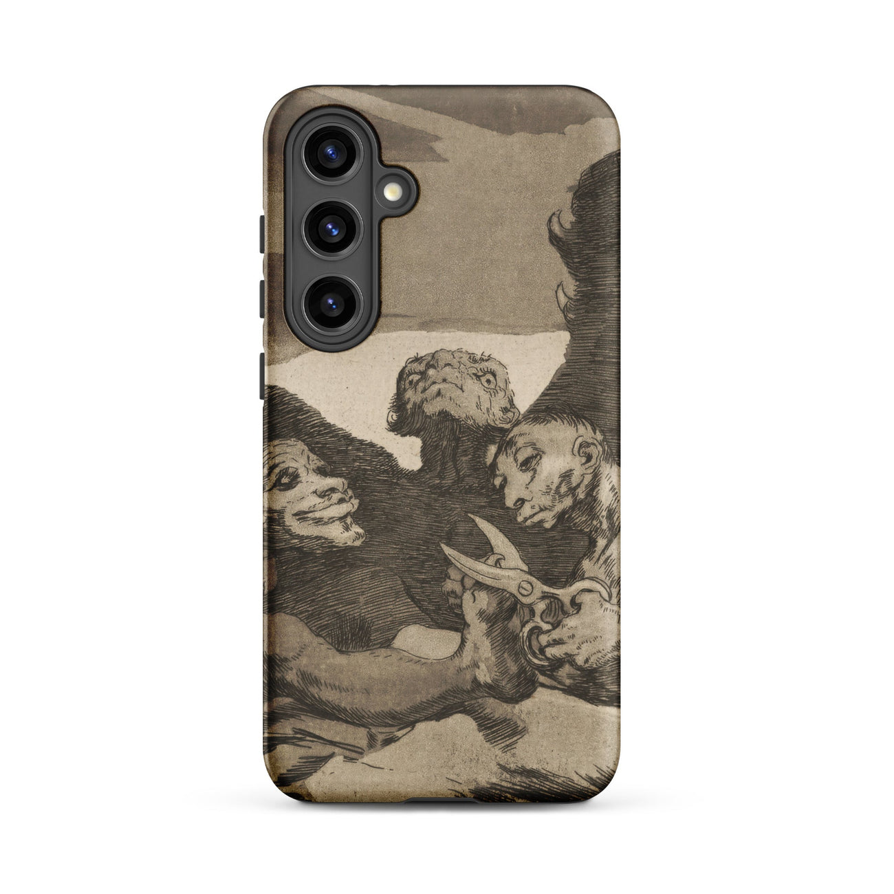 Francisco de Goyas Sie putzen sich heraus erscheint auf diesem Samsung-Case als groteske Parodie auf die Eitelkeit. Figuren mit verzerrten Gesichtern drängen sich zusammen, eine schwingt die Schere über den klauenartigen Fuß einer anderen, ihr Pflegeritual in Spott gerahmt.