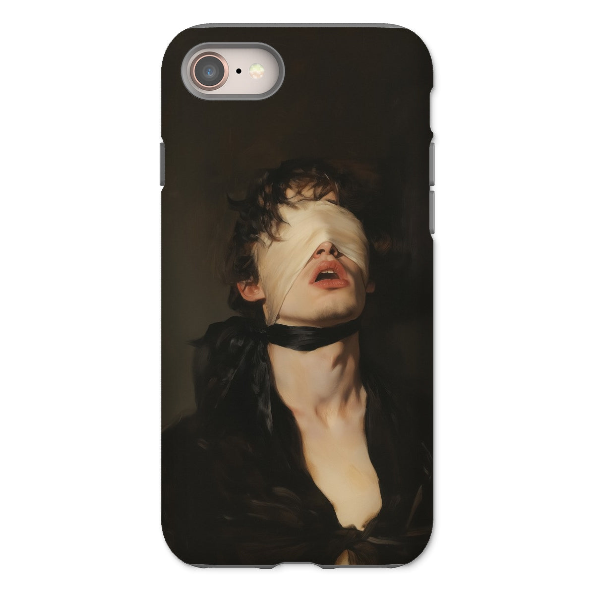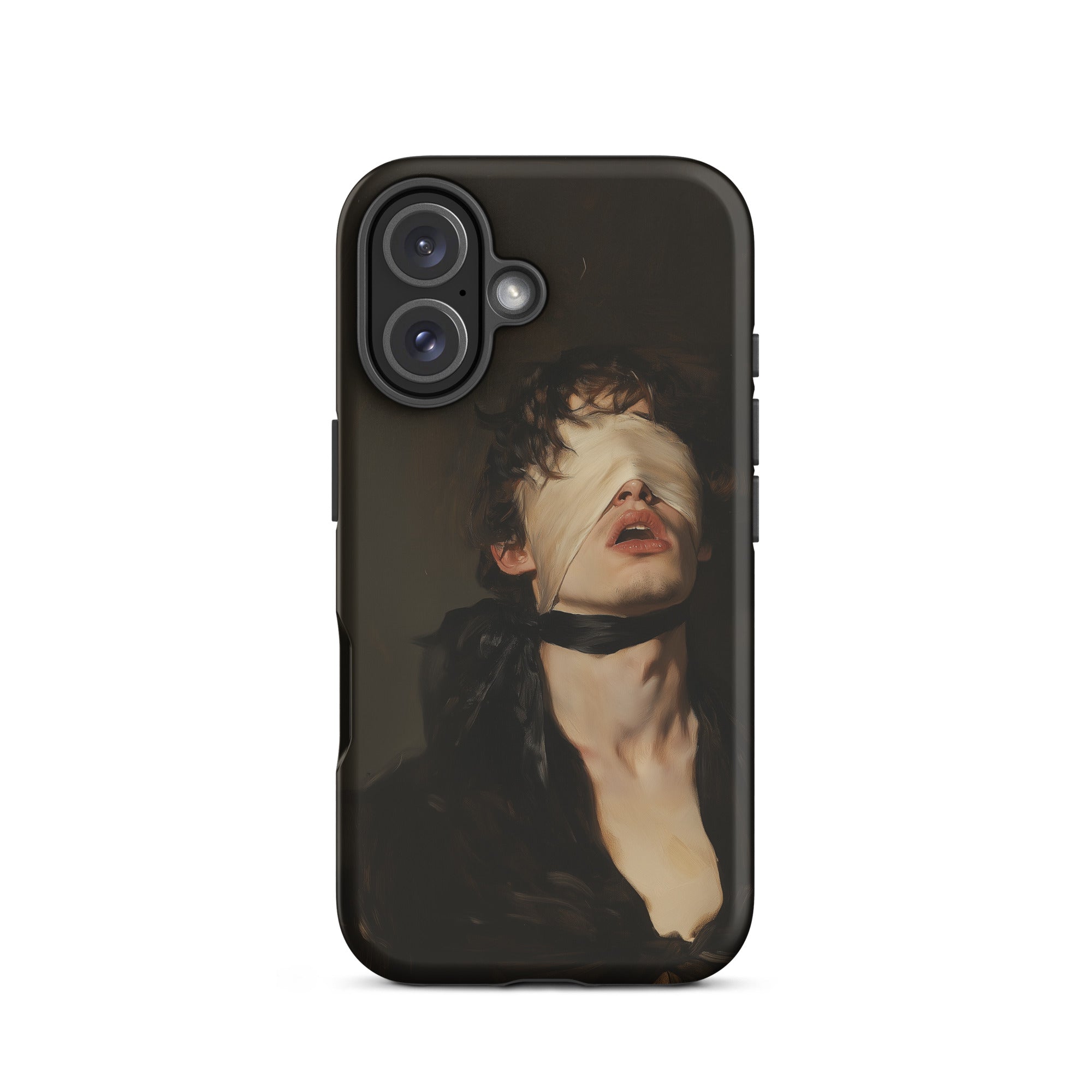 Eine Vision von Sehnsucht und Hingabe, dieses Vintage-SM-Blindfold für Schwule iPhone-Hülle ist ein Relikt der Begierde—wo Macht und Verletzlichkeit sich wie Seide und Haut verflechten. Seine Lippen, geöffnet, als ob sie ein Gebet oder einen Fluch flüstern, zittern unter dem Gewicht unsichtbarer Hände. Die fest gebundene Augenbinde nimmt ihm das Augenlicht, aber nicht die Sehnsucht. Schatten winden sich um seine Gestalt, ein Chiaroscuro-Echo homoerotischer barocker Kunst, die an Caravaggios verletzte Heilige und verbotene Liebhaber erinnert.
