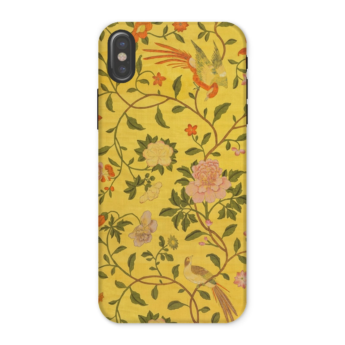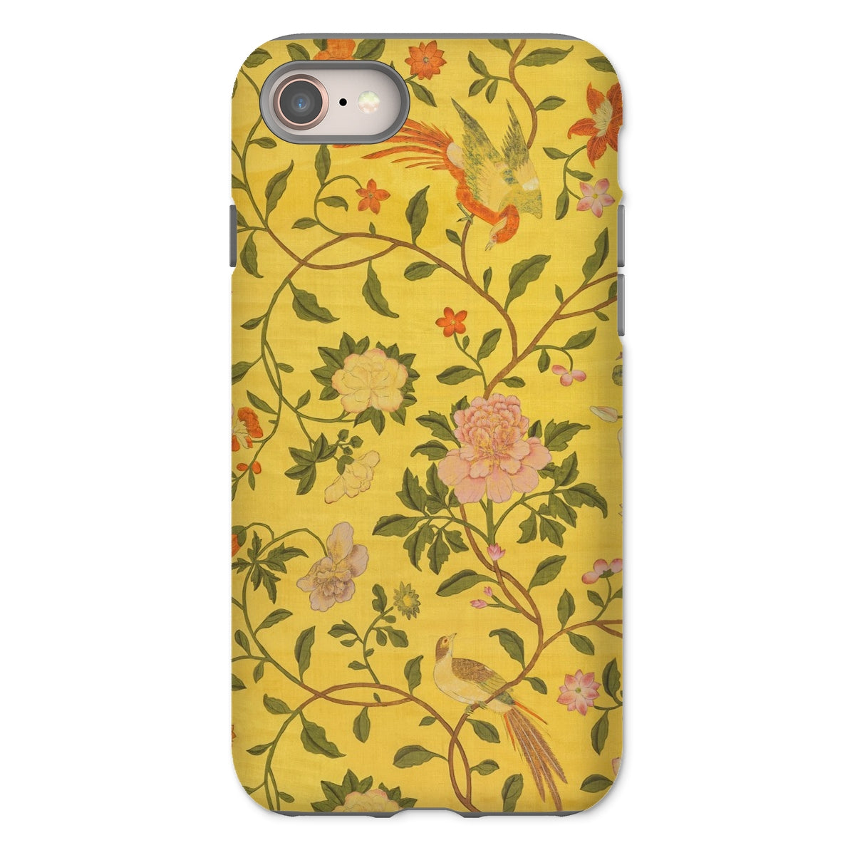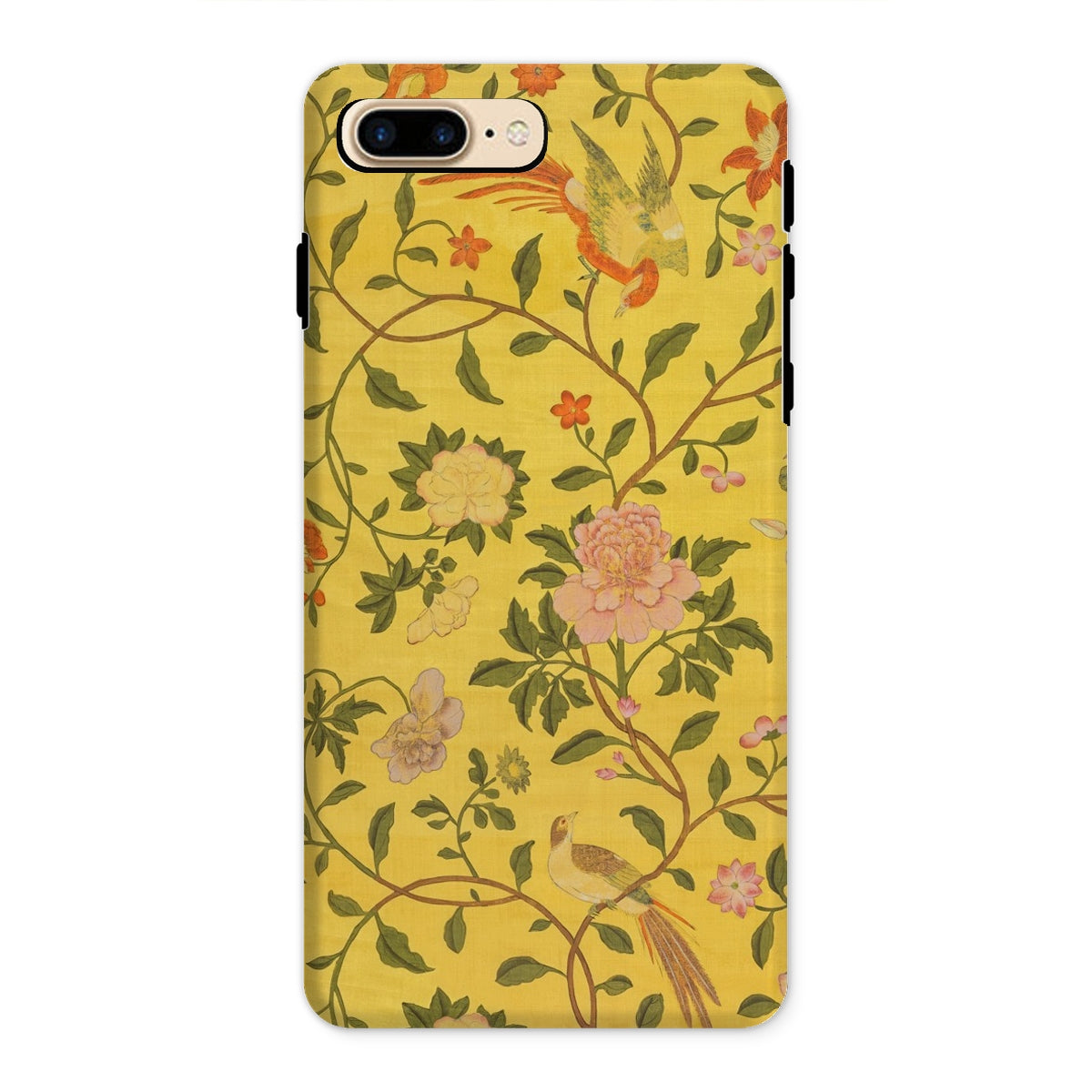 Ein goldener Hauch, eine Symphonie aus Seide—dieses Sweet Summer iPhone-Case umhüllt die verweilenden Echos einer imperialen Vergangenheit, wo die Vogel-und-Blumen-Tradition (花鸟纹, huāniǎo wén) sich in zarten Arabesken entfaltet, jeder Zweig ein Abschnitt aus einem vergessenen höfischen Gedicht. Das leuchtende Gelb der Seide—einst das alleinige Privileg der Kaiser—strahlt wie das erste Licht der Morgendämmerung über Suzhous Webateliers, wo Kunsthandwerker pfirsichfarbene Pfingstrosen und errötende Chrysanthemen auf durchscheinende Seide malten, ihre Hände geleitet von Jahrhunderten ästhetischer Philosophie.