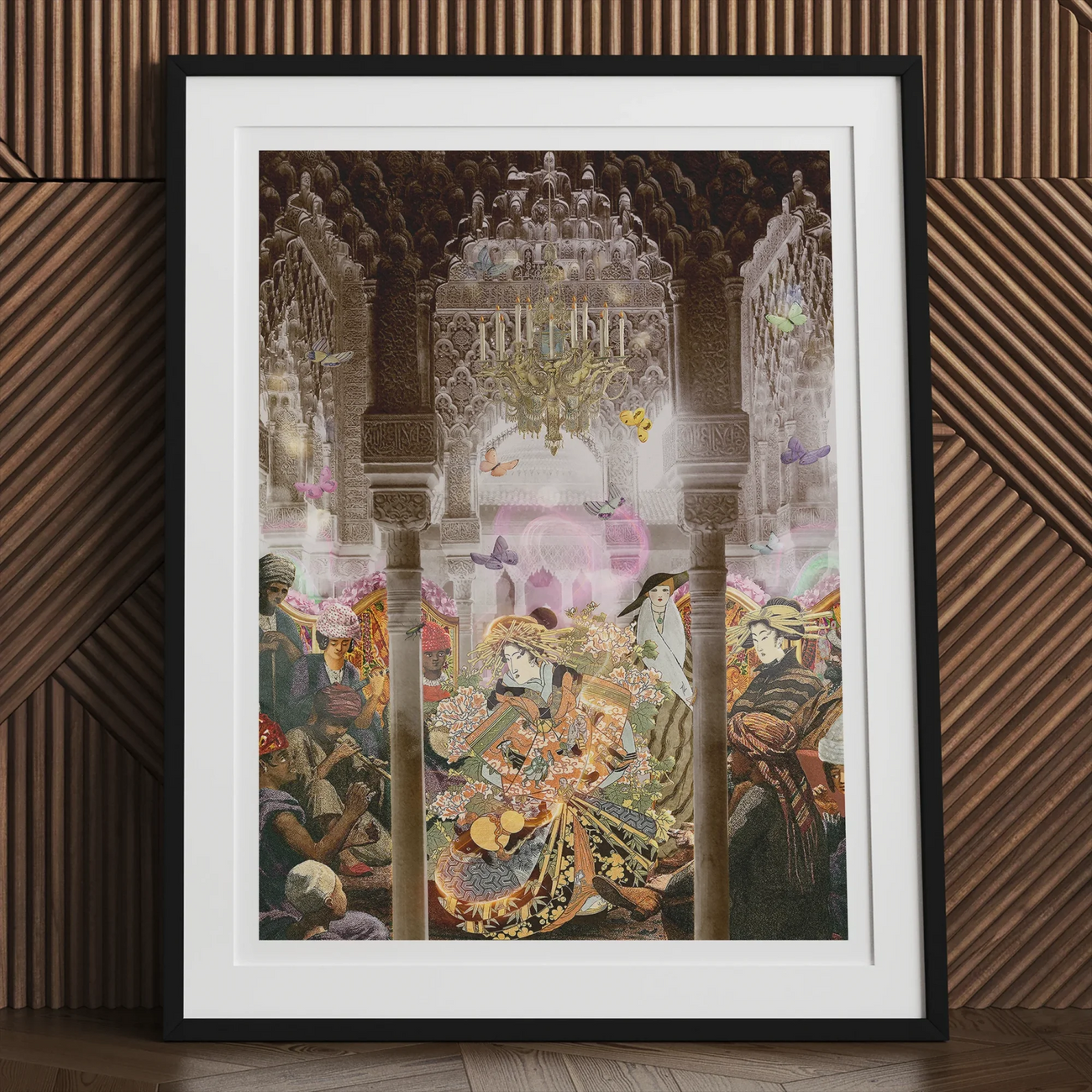 Siehe, visionäre Suchende von lebhaften Abenteuern. Diese tanzende Königin Kunstdruck winkt. Sie bestrafen Sie mit einem Portal zu Bereichen, in dem Kulturen zusammenkommen und Träume fliegen. Verzierte maurische Bögen, die eine fantastische Bühne rahmen, ihre komplizierten Muster flüsterten Geschichten über alte Paläste und verborgene Oasen.