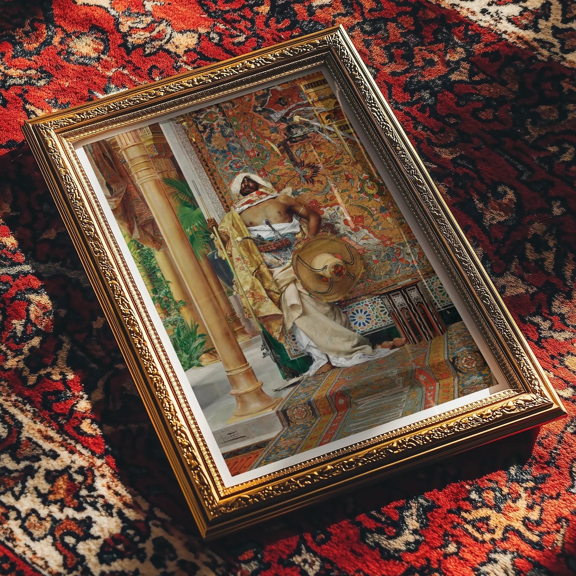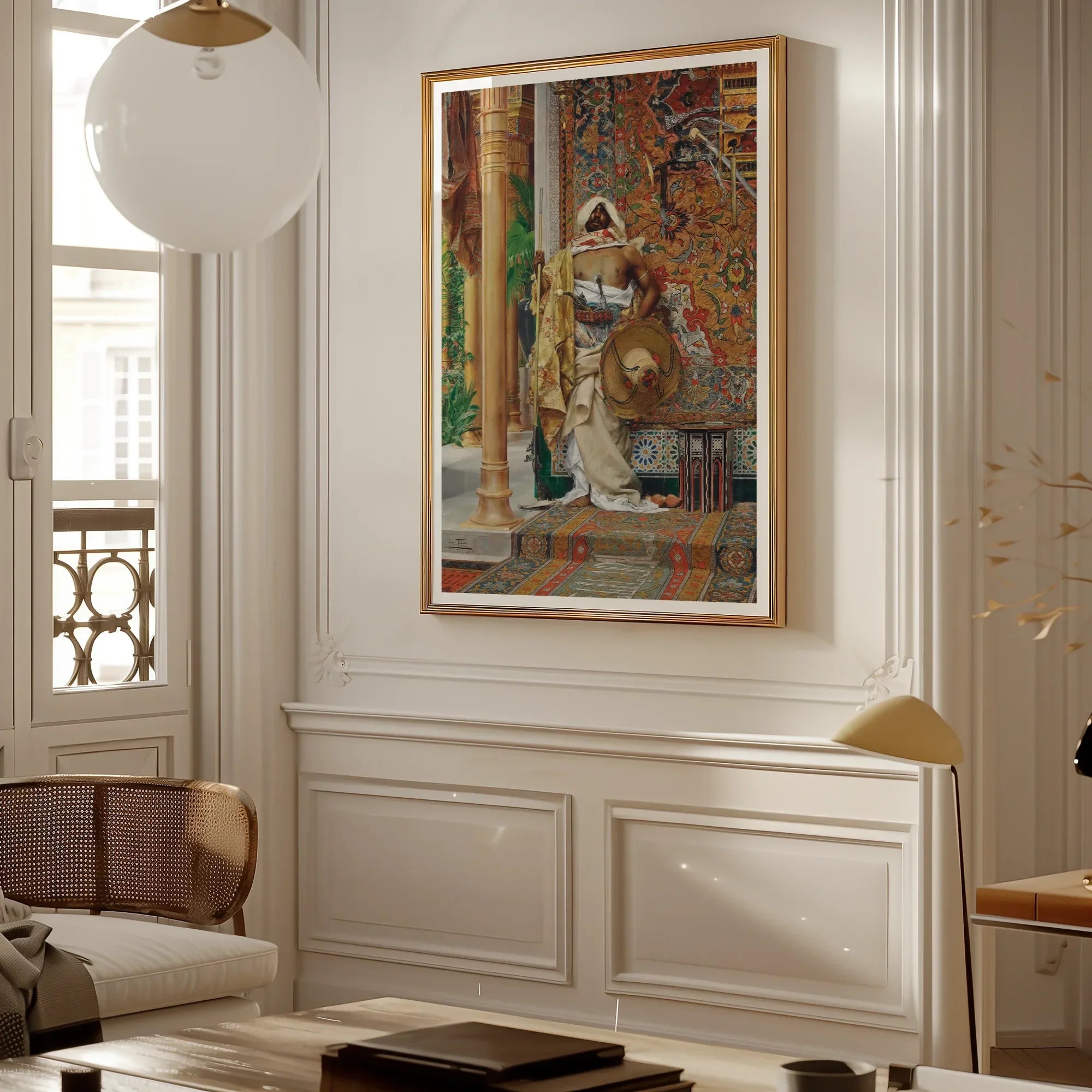 Dieser Druck ist nicht nur ein Dekor; Es ist ein Portal zum exotischen Reiz des 19. Jahrhunderts Orientalismus. Hängen Sie es stolz auf und lassen Sie seine verschwenderische Schönheit und historische Bedeutung Ihren Raum in eine Oase künstlerischer Wunder verwandeln.