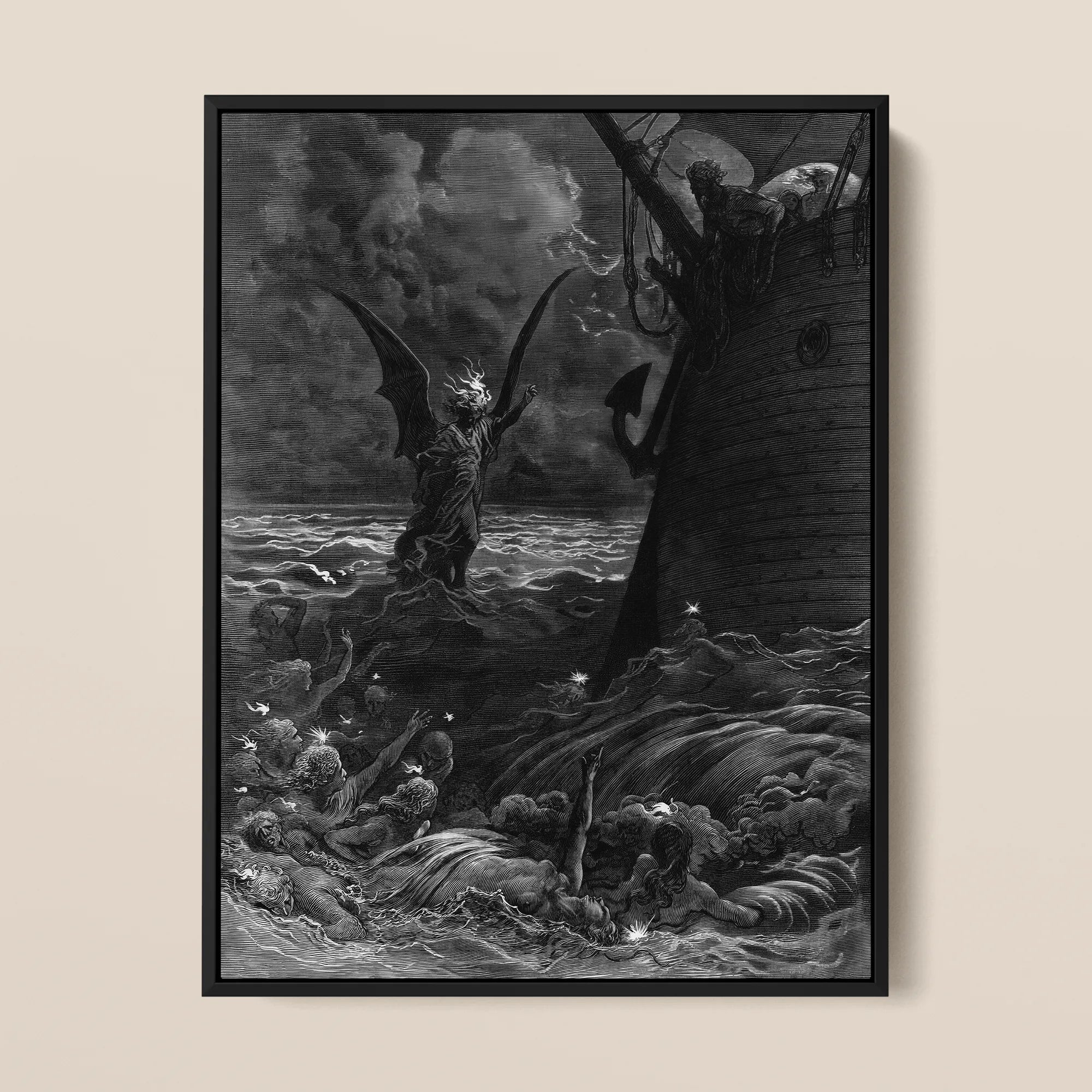 Todesfeuer Tanzen Um Das Ruhende Schiff - Gustave Dore Gerahmte Leinwand