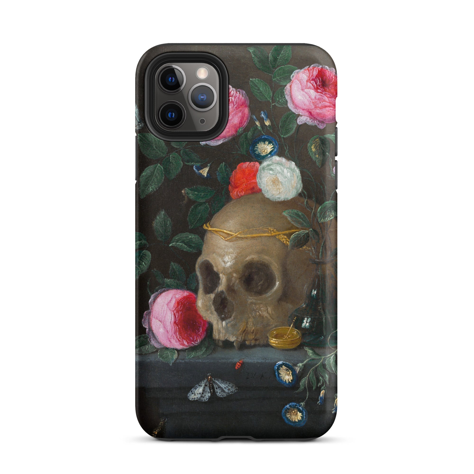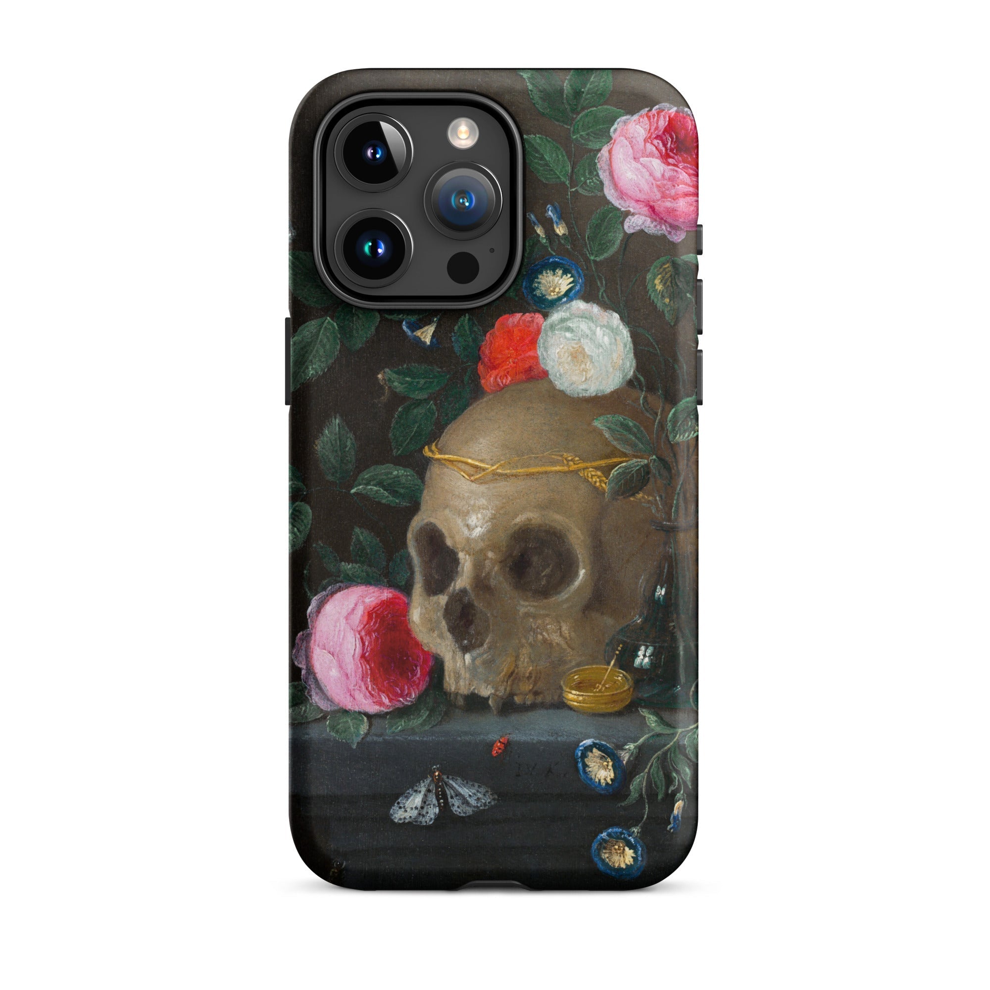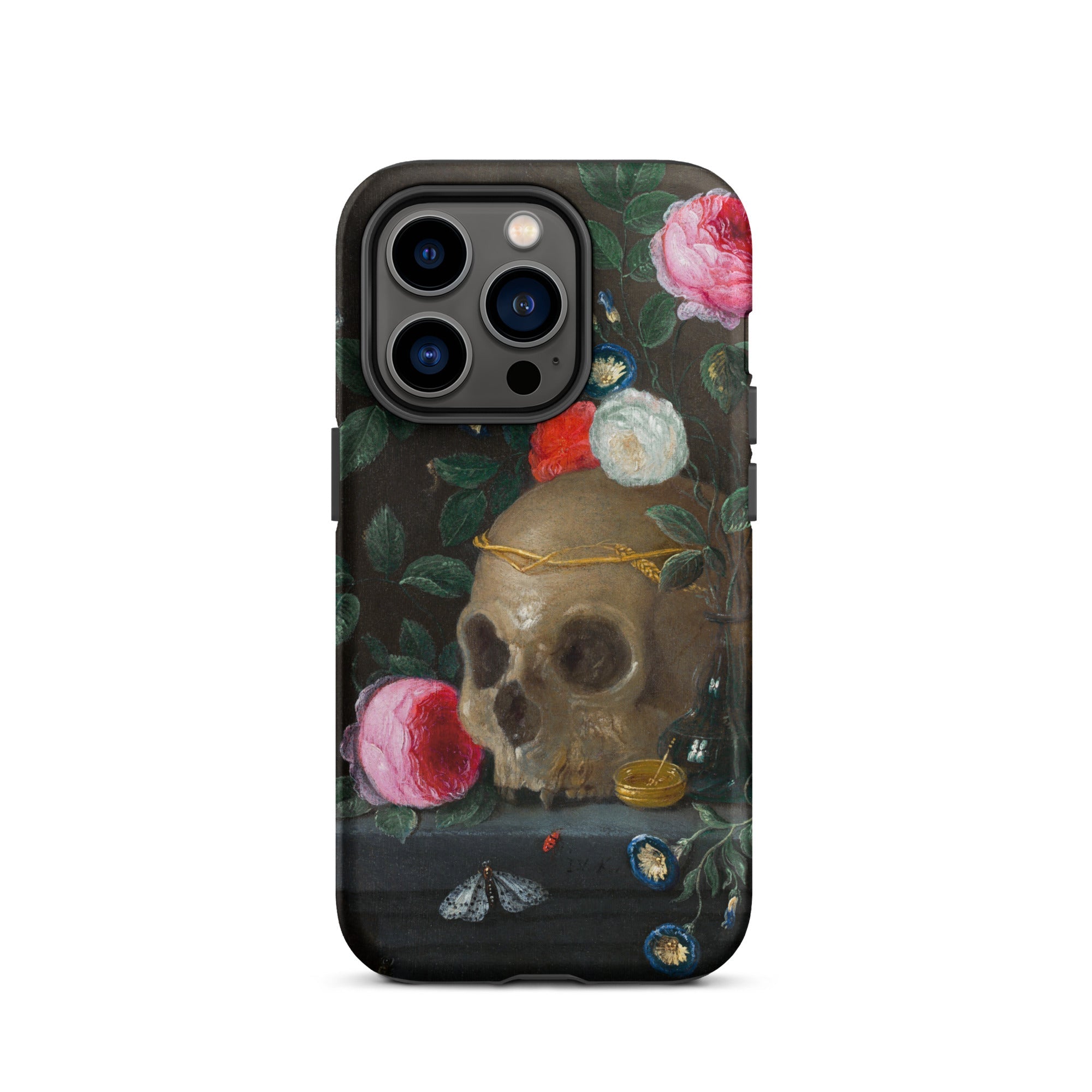 Hier gibt es keine Trübsal, nur Eleganz am Rande. Die iPhone-Hülle wird zu einem tragbaren Altar, der im 17. Jahrhundert auf Niederländisch flüstert: all dies wird auch vergehen—also lass es glänzen, solange es das tut.