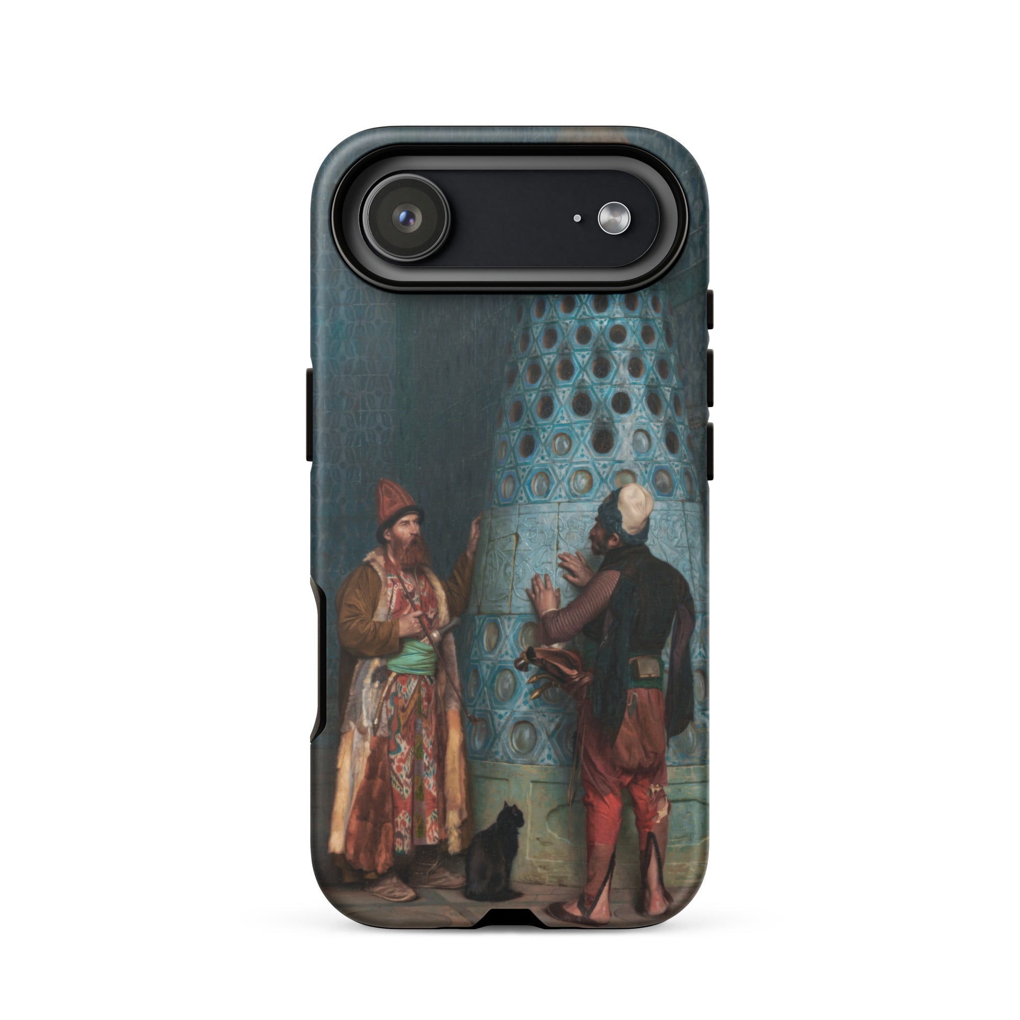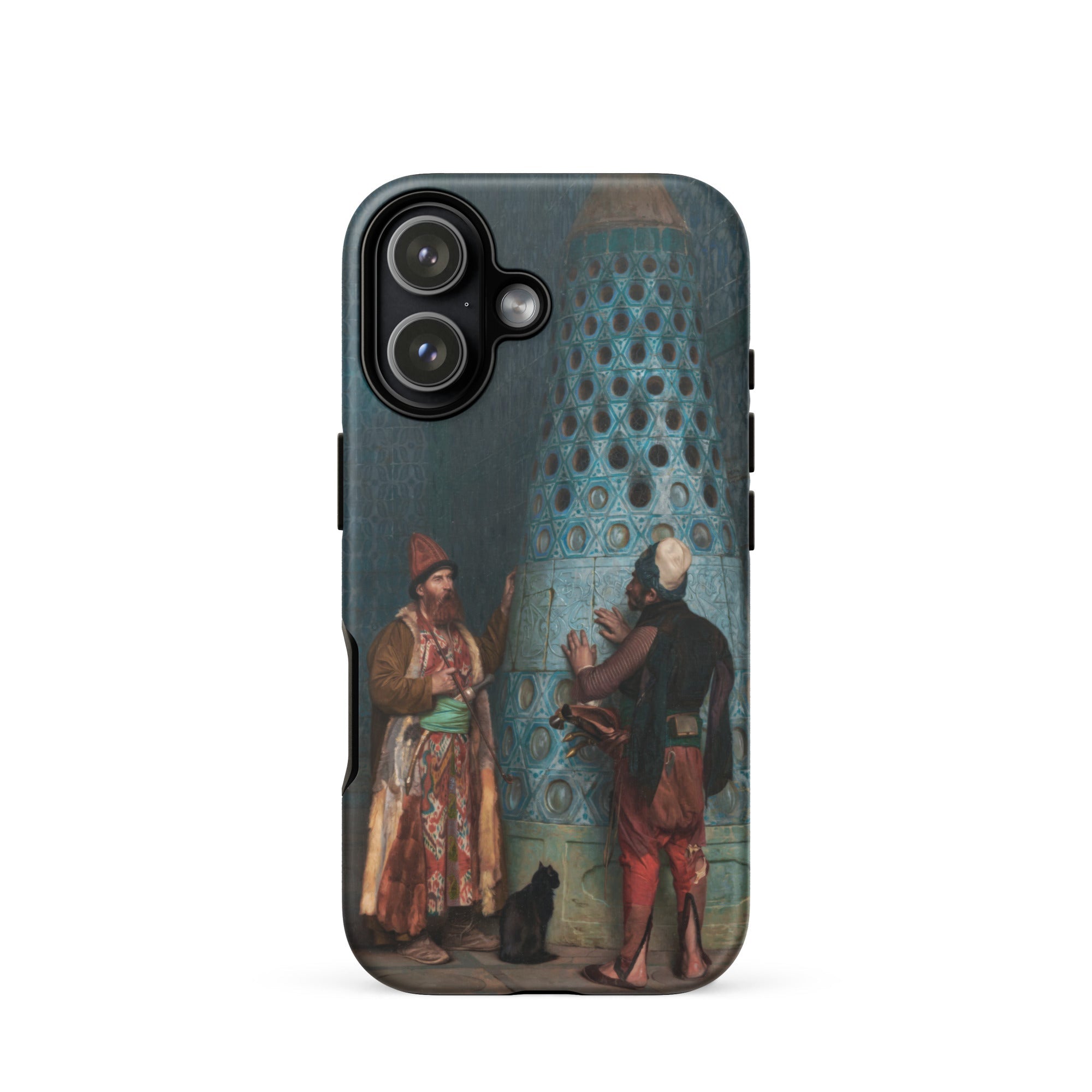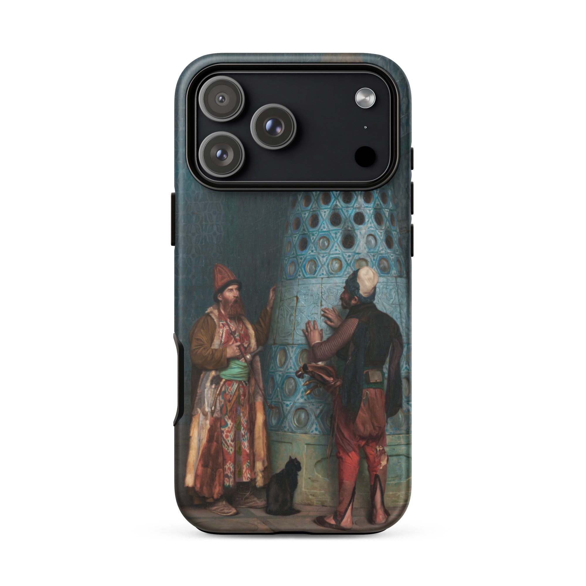 Geschichte verdichtet sich zu einer Kammer des Zuhörens, des codierten Austauschs und unausgesprochener Strategie. Auf deinem iPhone getragen, faltet dieses Etui Gérômes Meisterschaft des 19. Jahrhunderts in deine Tasche und strahlt Farbe, Ornament und Intrige aus.