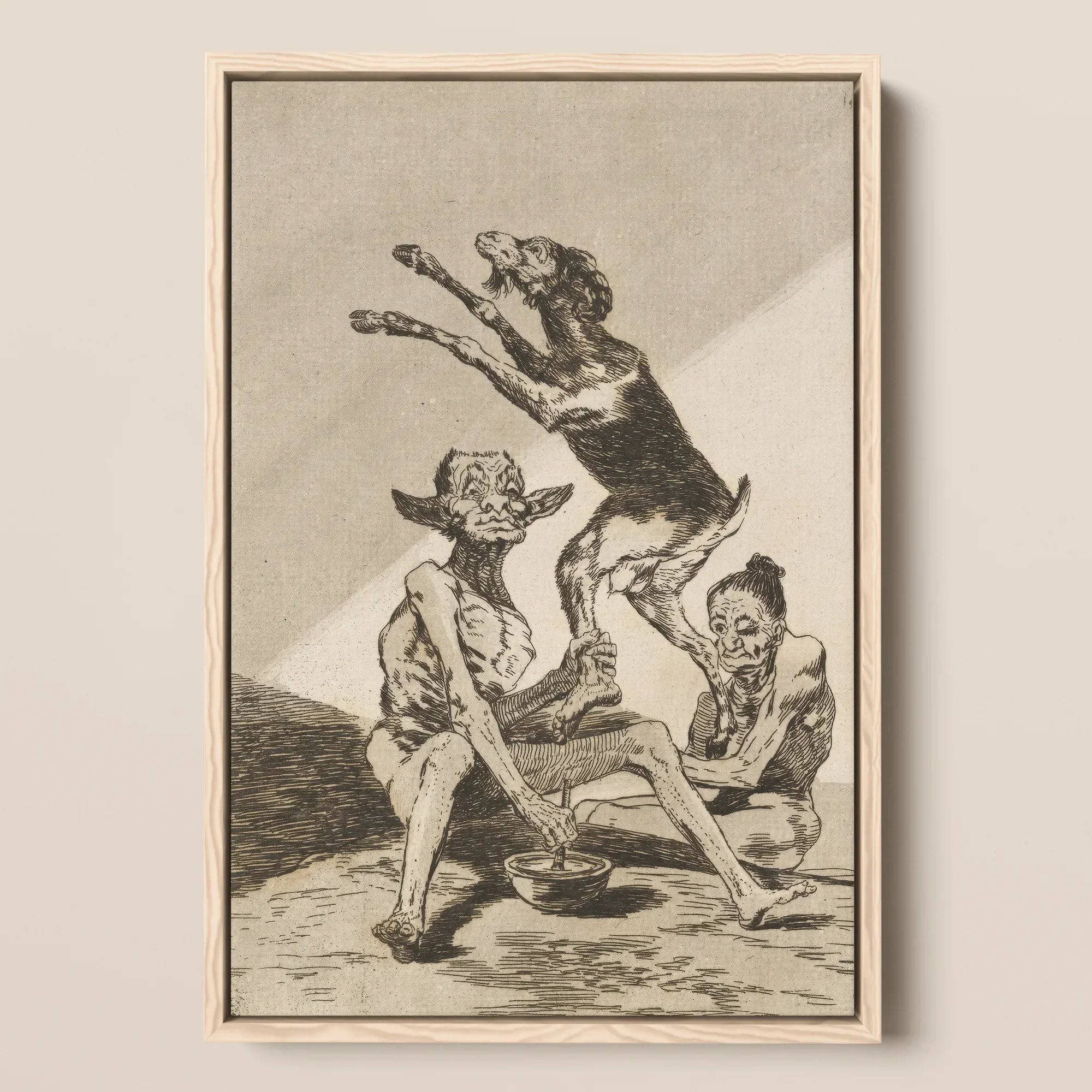 Die Luft summt vor Wahnsinn und Sehnsucht. Unter Goyas säuregebissenem Licht salben Hexen einen Ziegenbock, als bereiteten sie ihn auf die Apotheose vor. Die Satire schneidet tief, aber Mitgefühl flackert darin auf - er sah in ihrem Rausch das Wehklagen eines Volkes, das von der Vernunft verlassen wurde.