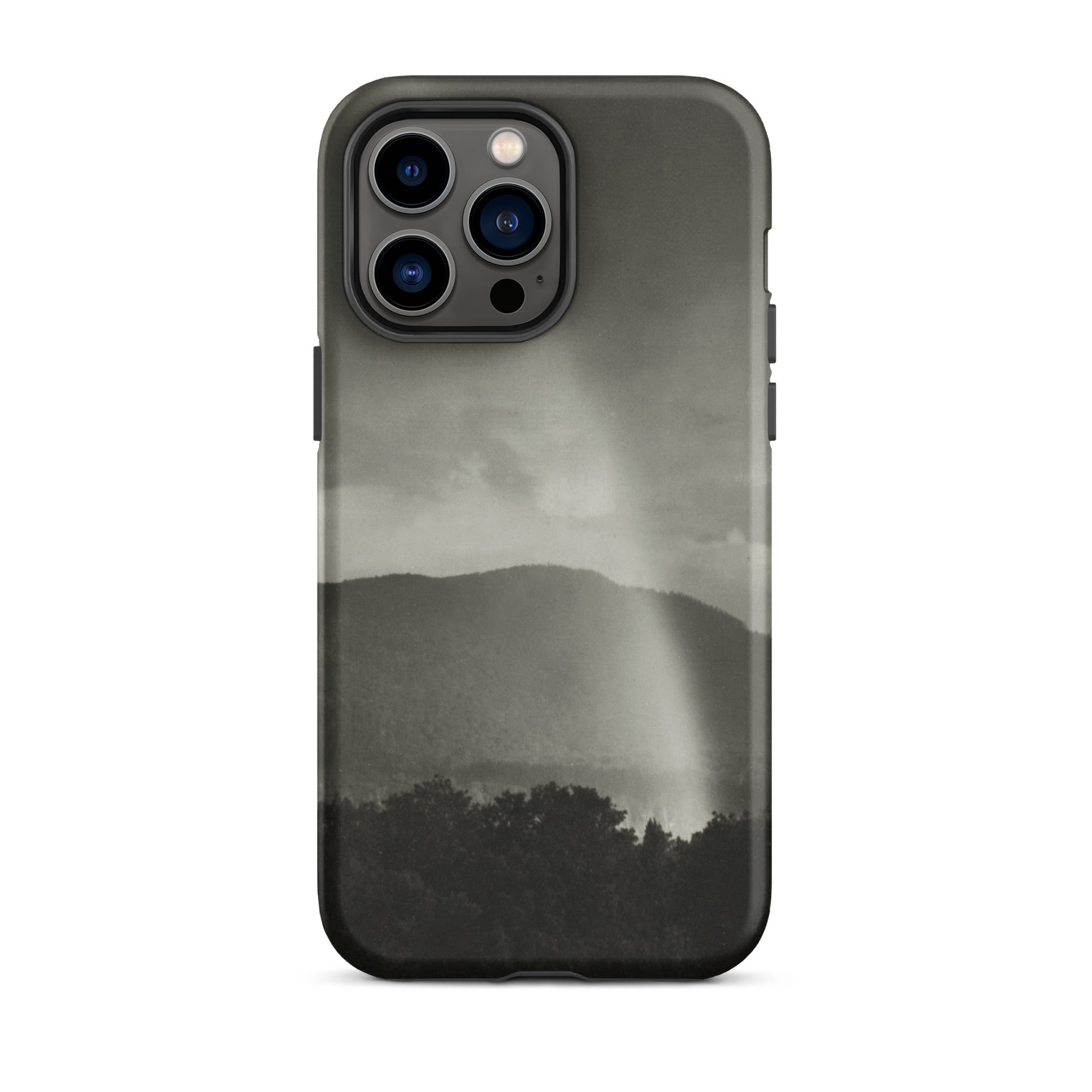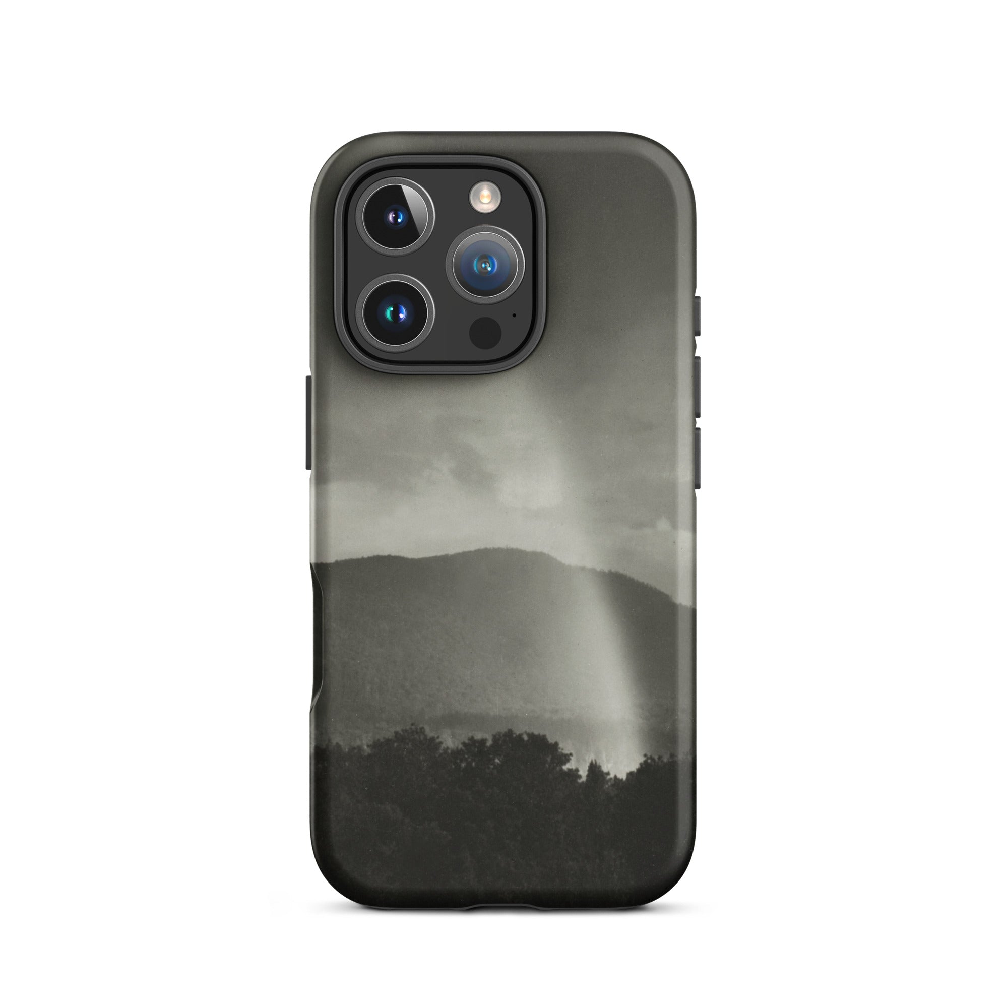 Un tormenta suspira, las montañas contienen la respiración, y luego—la luz se abre paso. Rainbow de Alfred Stieglitz susurra sobre la transitoriedad, un puente fugaz entre la oscuridad y la iluminación. Ahora inmortalizado en esta funda de iPhone en blanco y negro, el resplandor espectral atraviesa el cielo amenazante, un suave eco de la poesía indomable de la naturaleza.