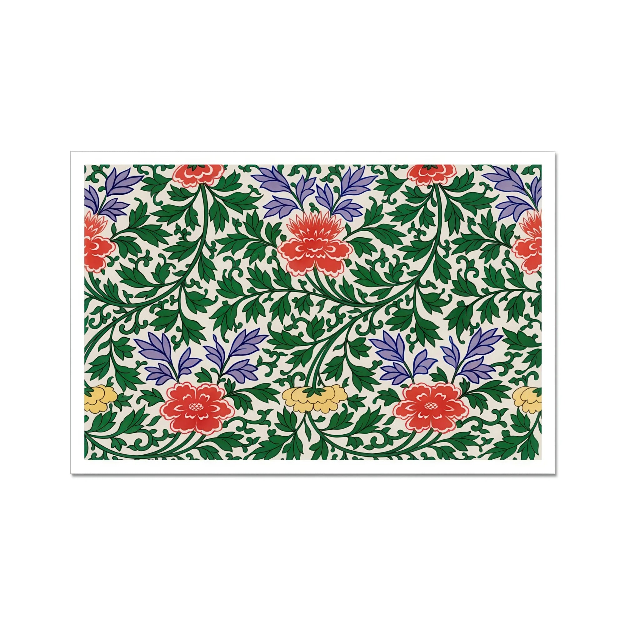 Sumérgete en el exuberante tapiz de esta ilustración botánica china de Owen Jones. Una obra maestra de elegancia chinoiserie, esta multa estampado de arte te transporta a un mundo donde las peonías vibrantes reinan supremas, sus pétalos rojos audaces se despliegan en medio de un mar del follaje verde. Las delicadas flores de color púrpura bailan junto, creando una sinfonía armoniosa de color contra un lienzo de crema prístino.
