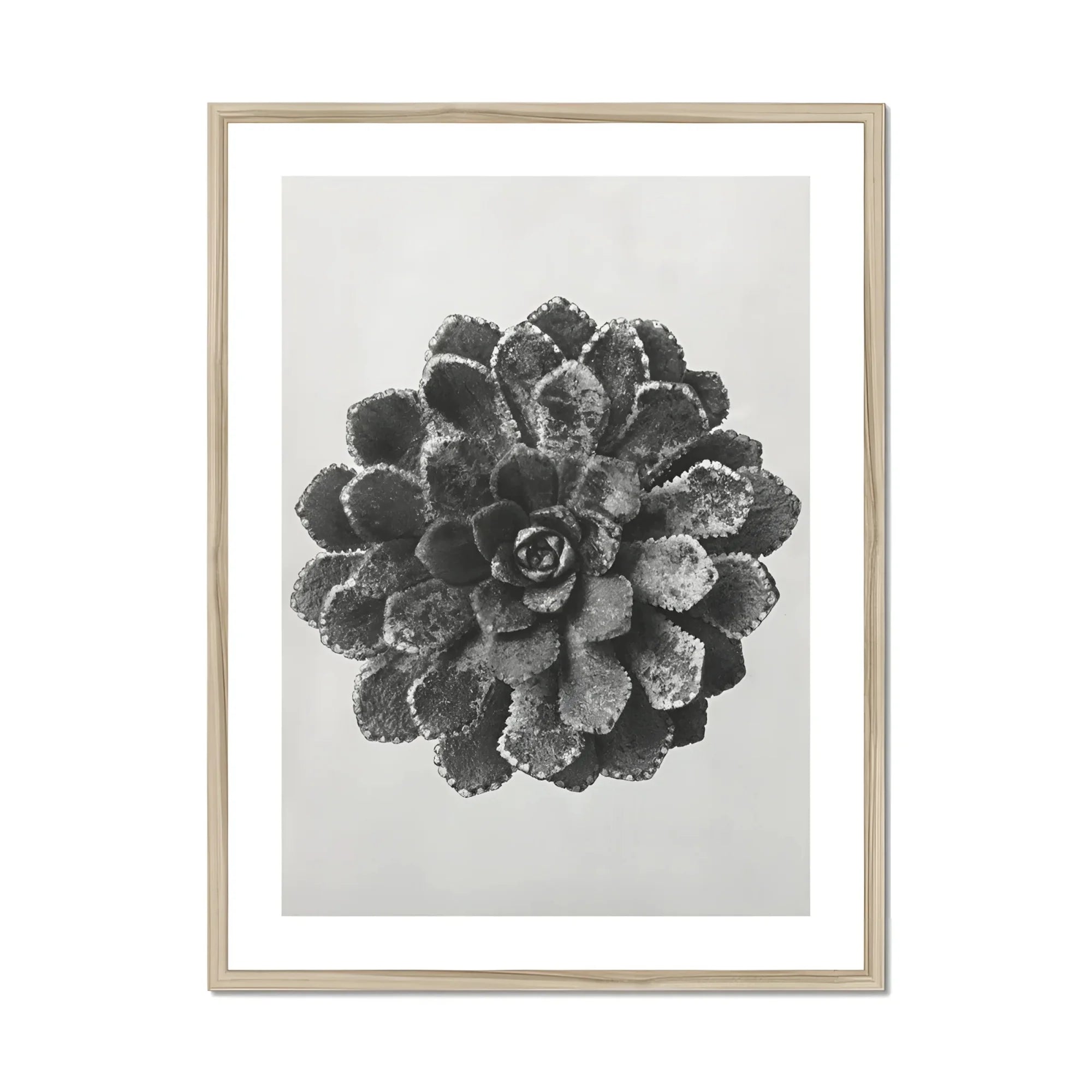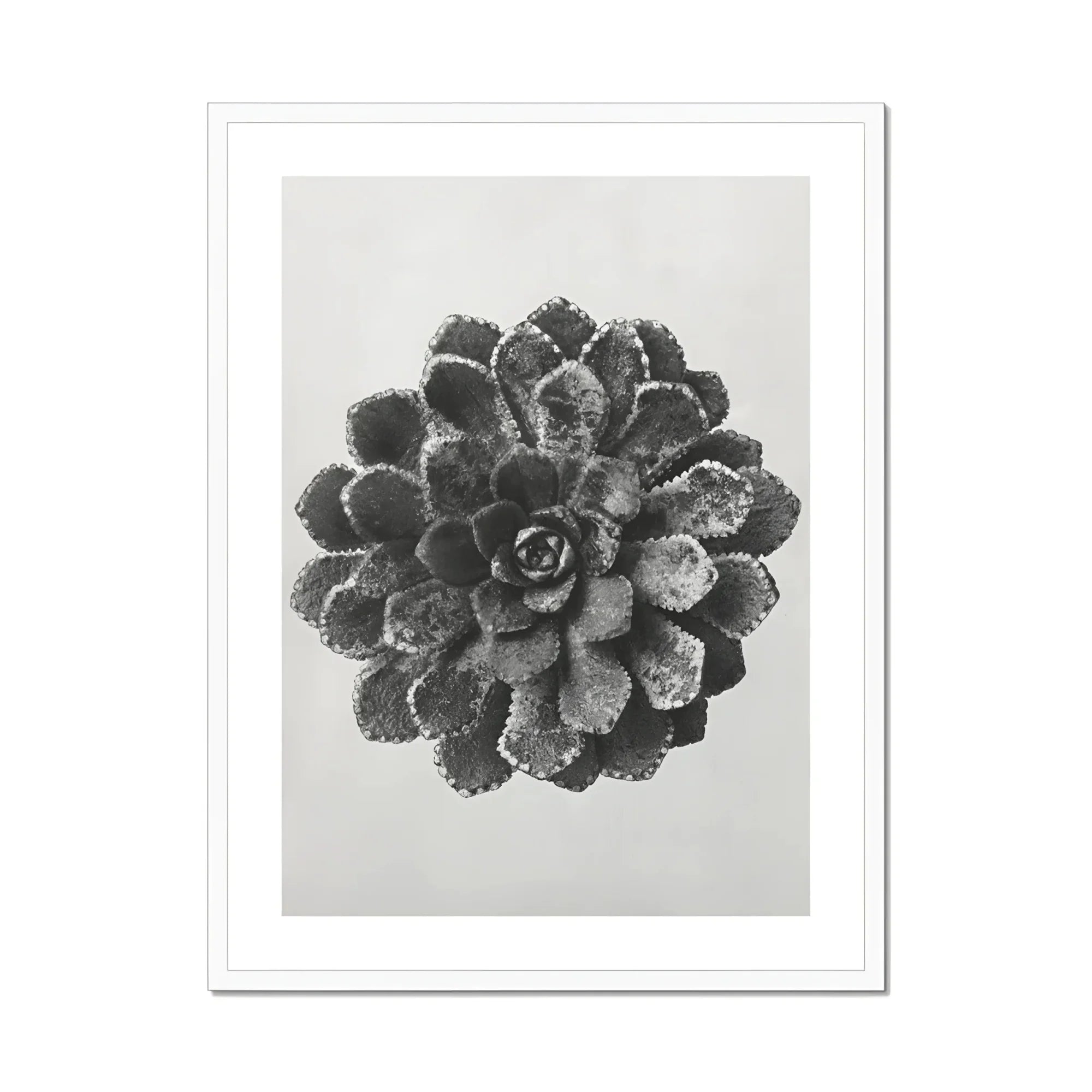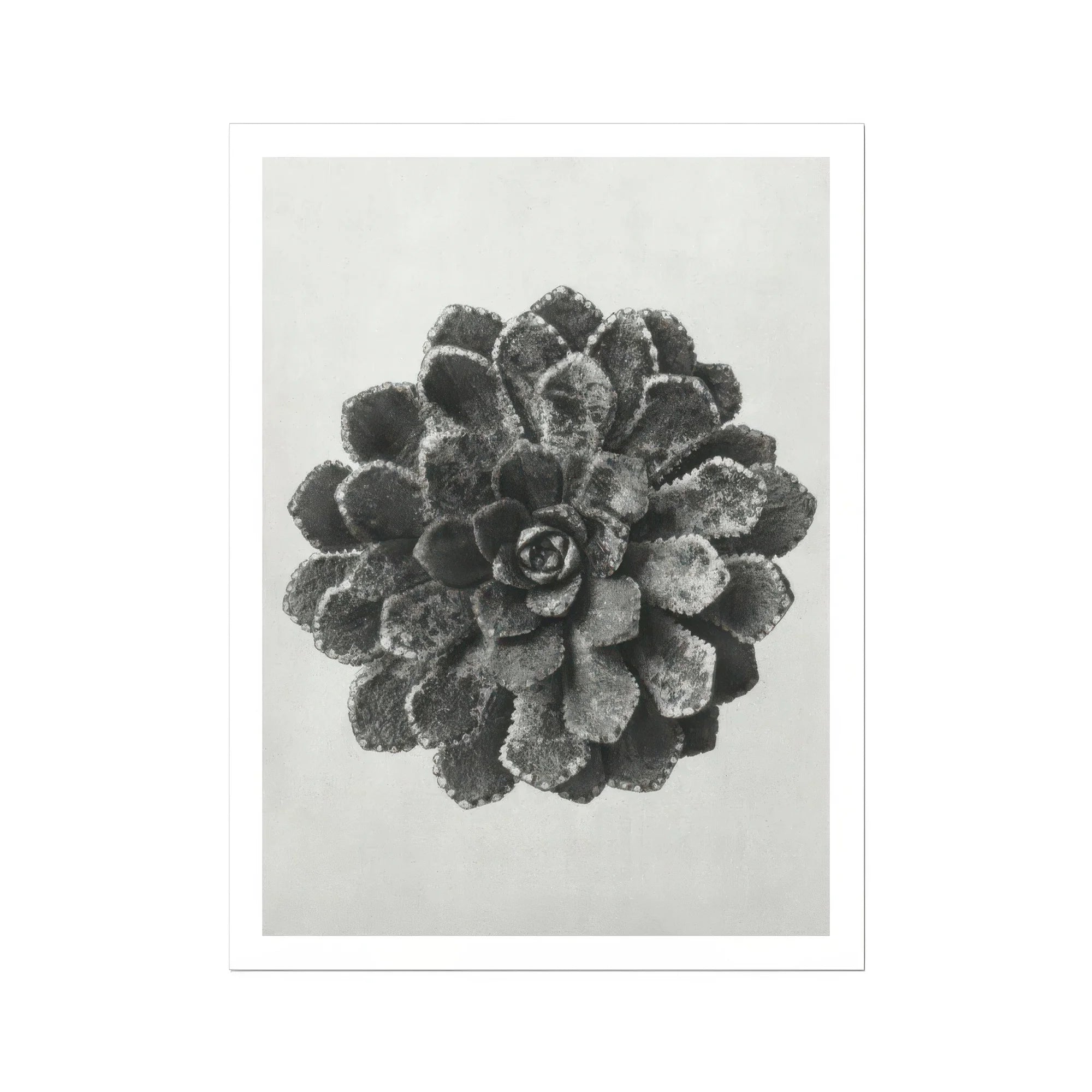 Cada hoja suculenta del saxifraga, fotografiado Con una precisión científica aún con gracia poética, captura la esencia íntima de las propias formas esculturas de la naturaleza. La pieza es un testimonio audaz del ojo de Blossfeldt para los desapercibidos, convirtiendo al cotidiano en un cuadro impresionante que desafía lo ordinario.