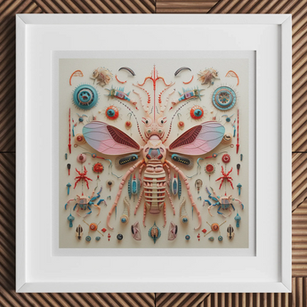 "Peachy Queen" redefine el arte xenobiológico, fusionando la precisión digital con la fantasía de la evolución especulativa. Esta impresión sorprendente muestra un monarca insectoide hipotético, sus alas diáfanas y su exoesqueleto de color melocotón que evoca tanto la entomología terrestre como la biotecnología de otro mundo.