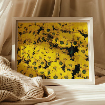 Colgar esta pieza infundirá tu espacio con sol perpetuo. Los tonos cálidos y los detalles exuberantes de la fotografía evocarán la sensación de estar de pie en medio de un jardín floreciente. Te encontrarás perdido en la repetición hipnotizante de las formaciones de pétalos, cada flor una obra de arte única dentro de la gran obra maestra.