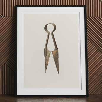 Stark contra el vacío de color crema, estas tijeras utilitarias se convierten en una oda escultórica de la simplicidad rústica. Rastrearás las curvas ergonómicas, imaginando las manos insensibles que una vez las manejaron. Este estampado de arte Susurra historias de temporadas de corte pasadas, invitando a la contemplación de la artesanía y el trabajo.