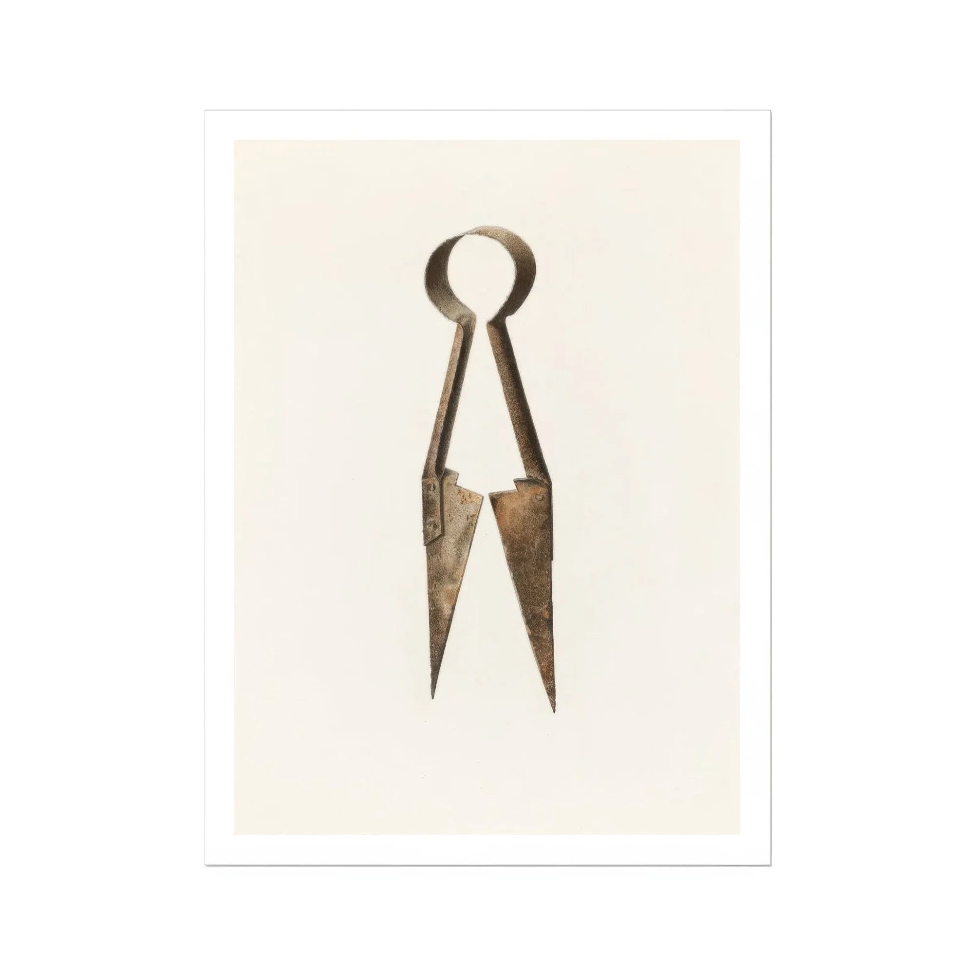 He aquí, una reliquia oxidada de la antigüedad agraria. Este estampado Harold Ballerd cortará a través de su decoración de la crisis con precisión afilada. Te maravillarás de la pátina desgastada de estas tijeras de recorte vintage, sus cuchillas listos para recortar hilos de nostalgia. La composición minimalista eleva las humildes herramientas agrícolas al estatus de chic industrial.