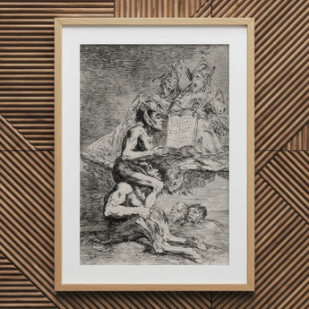 Esta impresión artística inmortaliza la revuelta de Goya contra el dogma, su escabrosa anatomía de la creencia convertida en arma para el control. Aquí, la devoción es devoradora, y la razón lucha por reclamar la luz sofocada bajo siglos de engaño.
