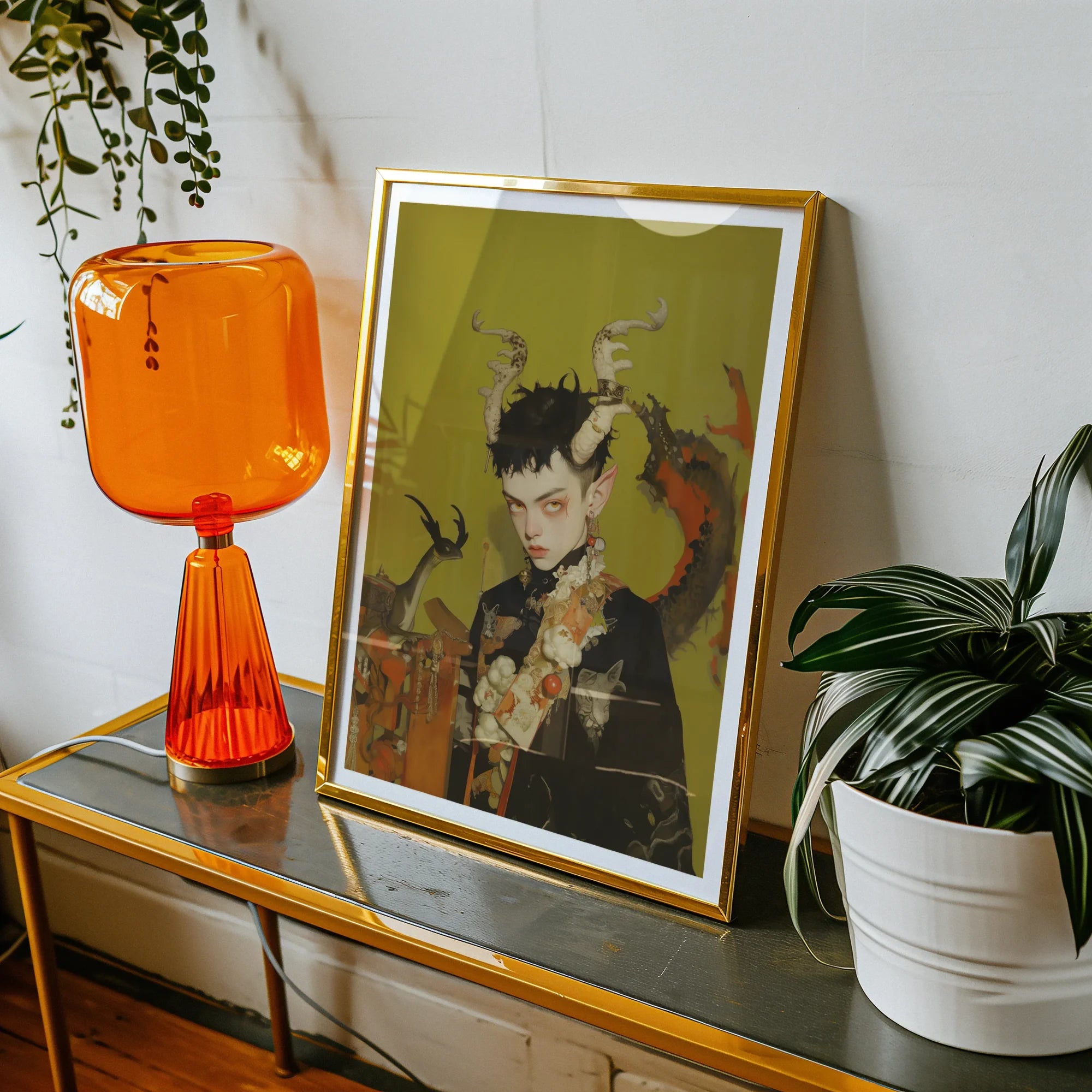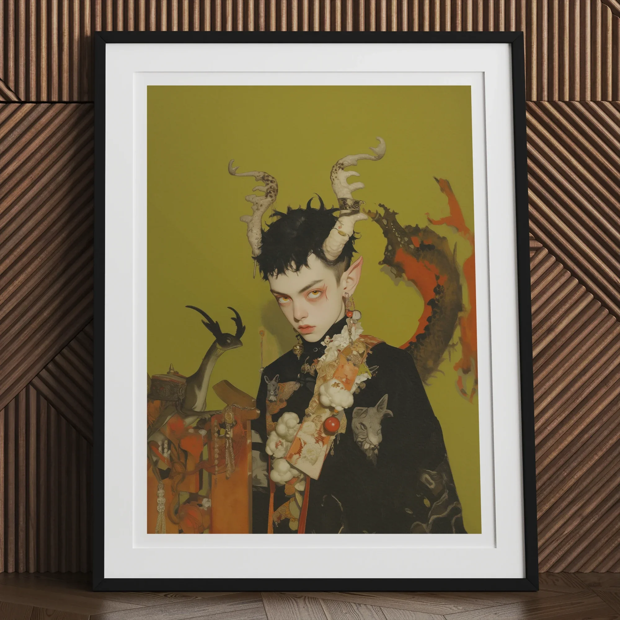 En los pliegues sombríos de la leyenda oculta, te encuentras con la descendencia retorcida de Baphomet, un gay Niño demoníaco preparado entre los mundos del surrealismo gótico y la mitología satánica. Su silueta ordena la escena con un aura de malevolencia mística. Cada curva de sus cuernos demoníacos es un guiño a temas sobrenaturales oscuros que susurran de los poderes antiguos.