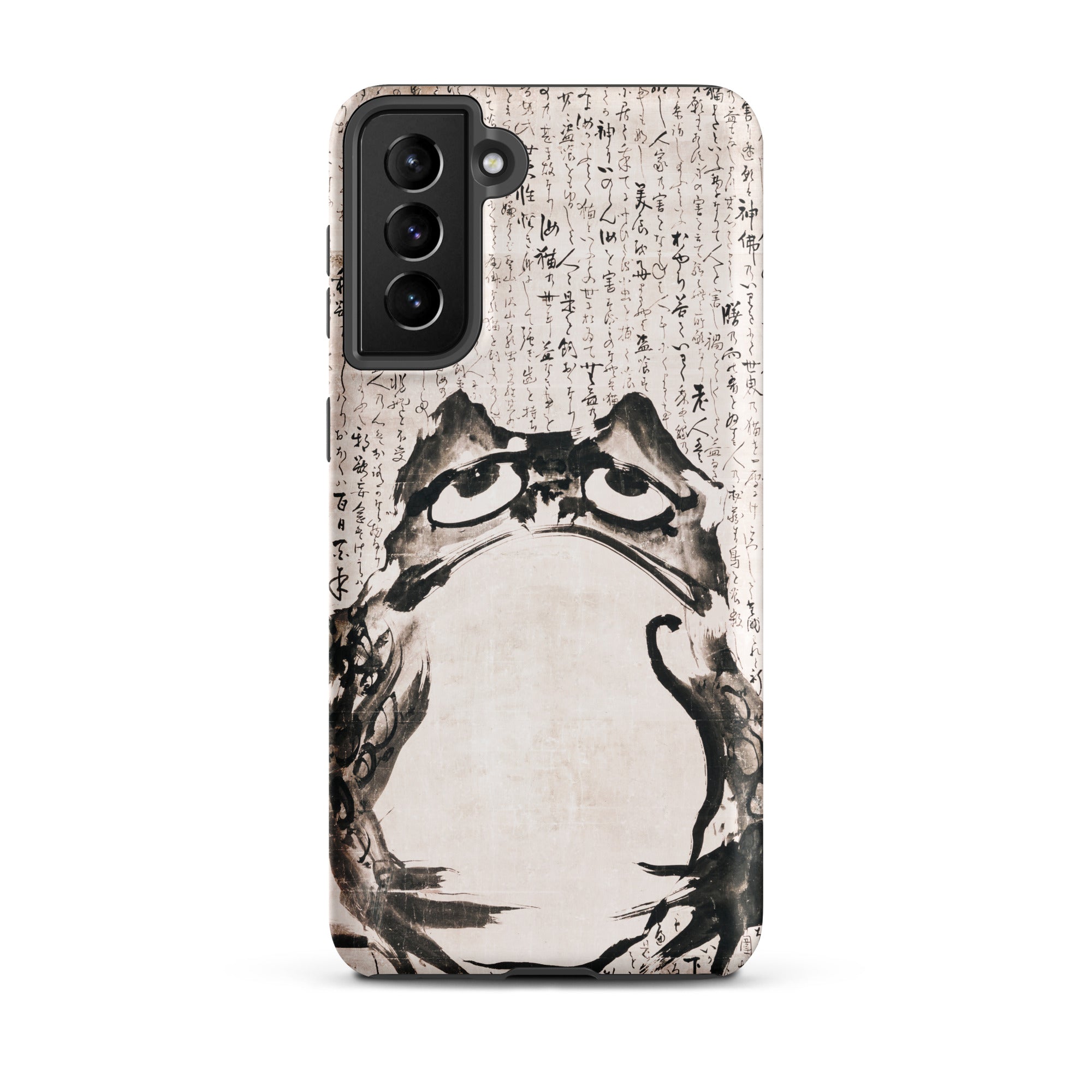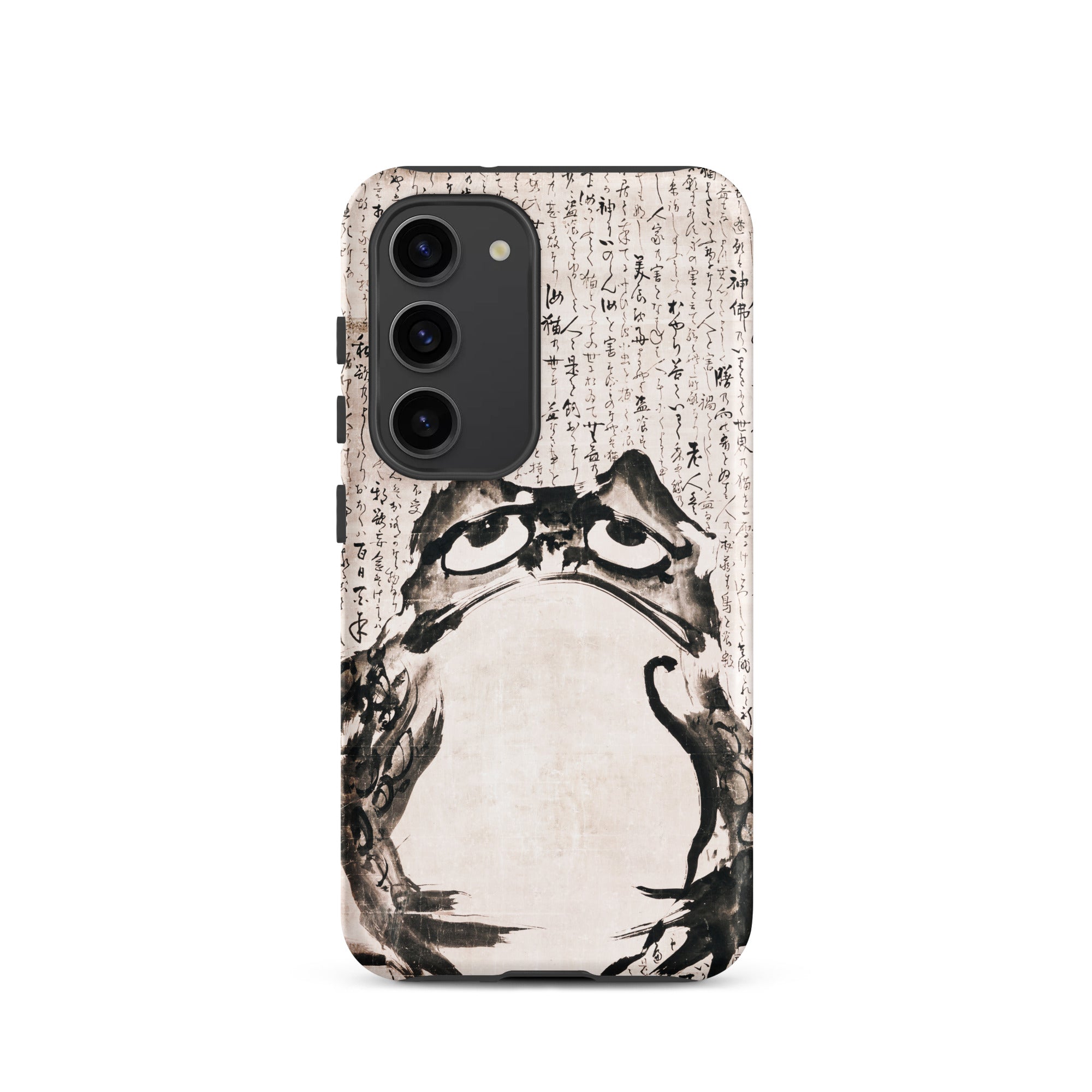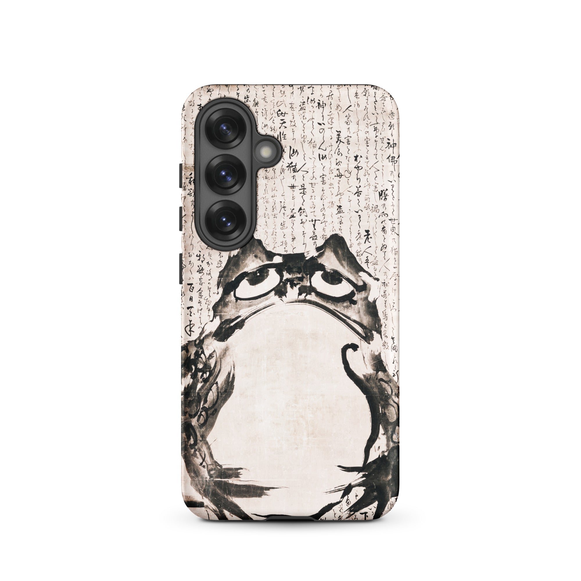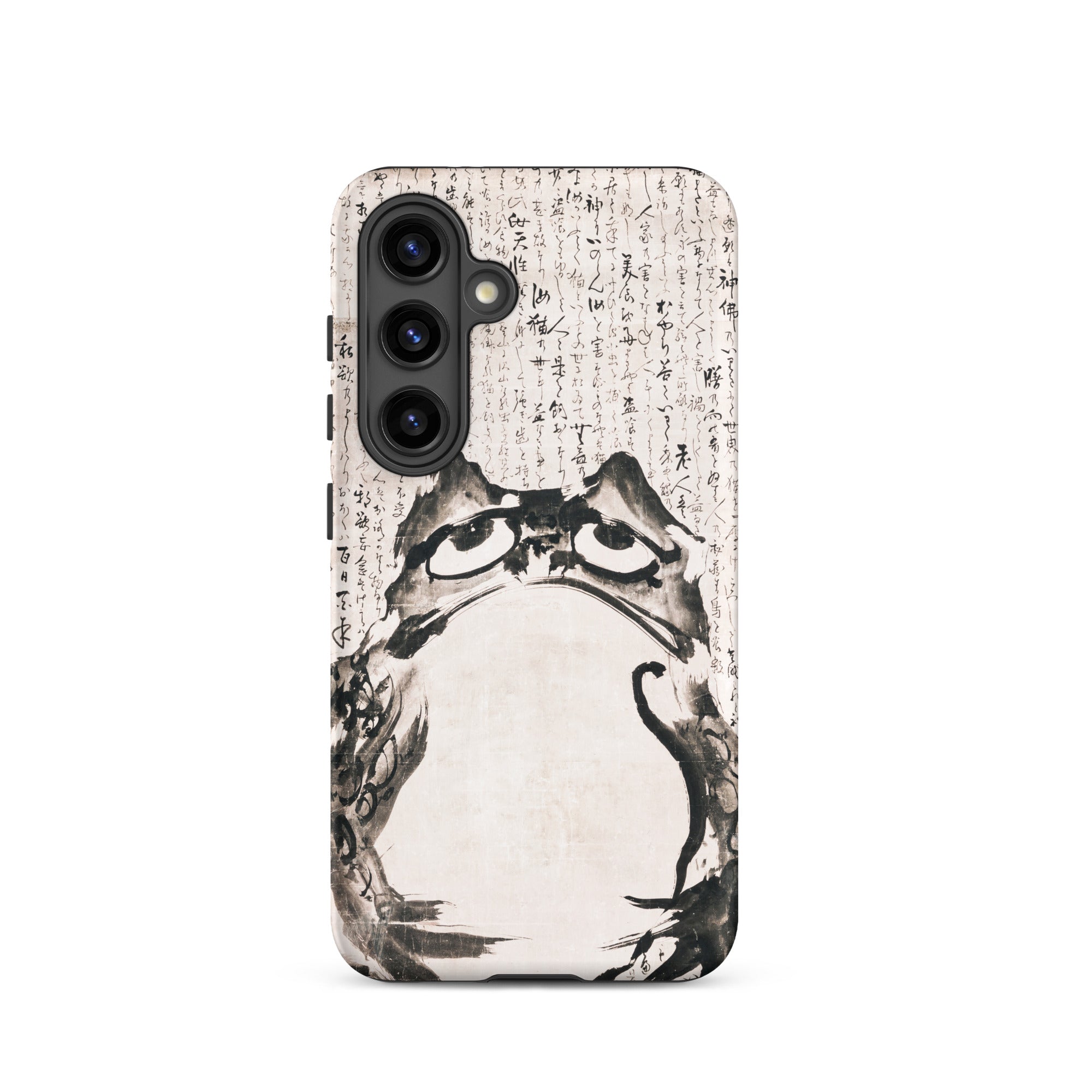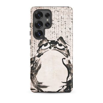 Este estuche Samsung lleva ese teatro silencioso a tu palma, su carcasa protectora envuelta en elegancia de la era Edo. Una fusión perfecta de función y arte, convierte tu teléfono en un guardián de tinta, lluvia y leyendas de anfibios.