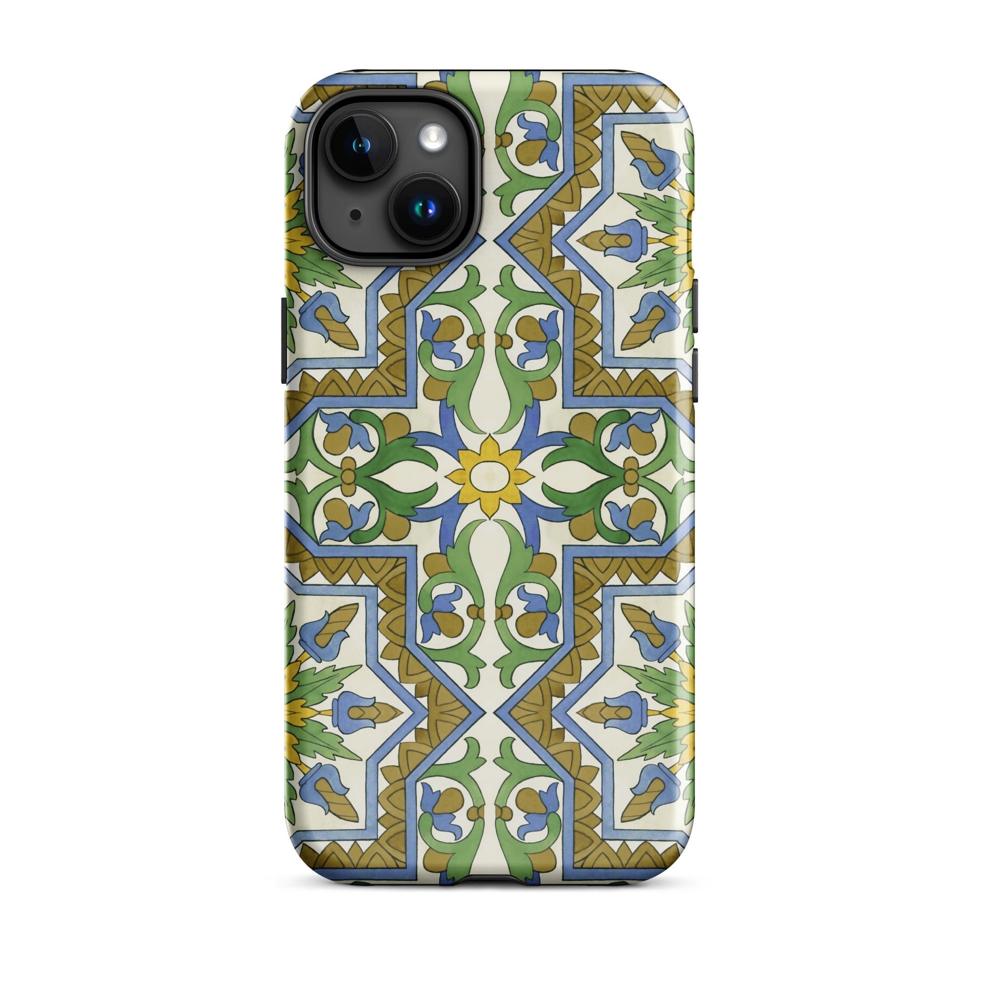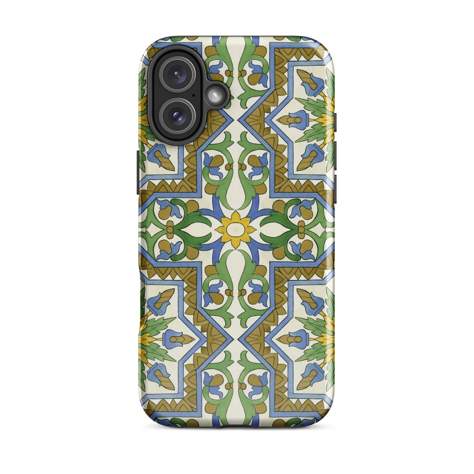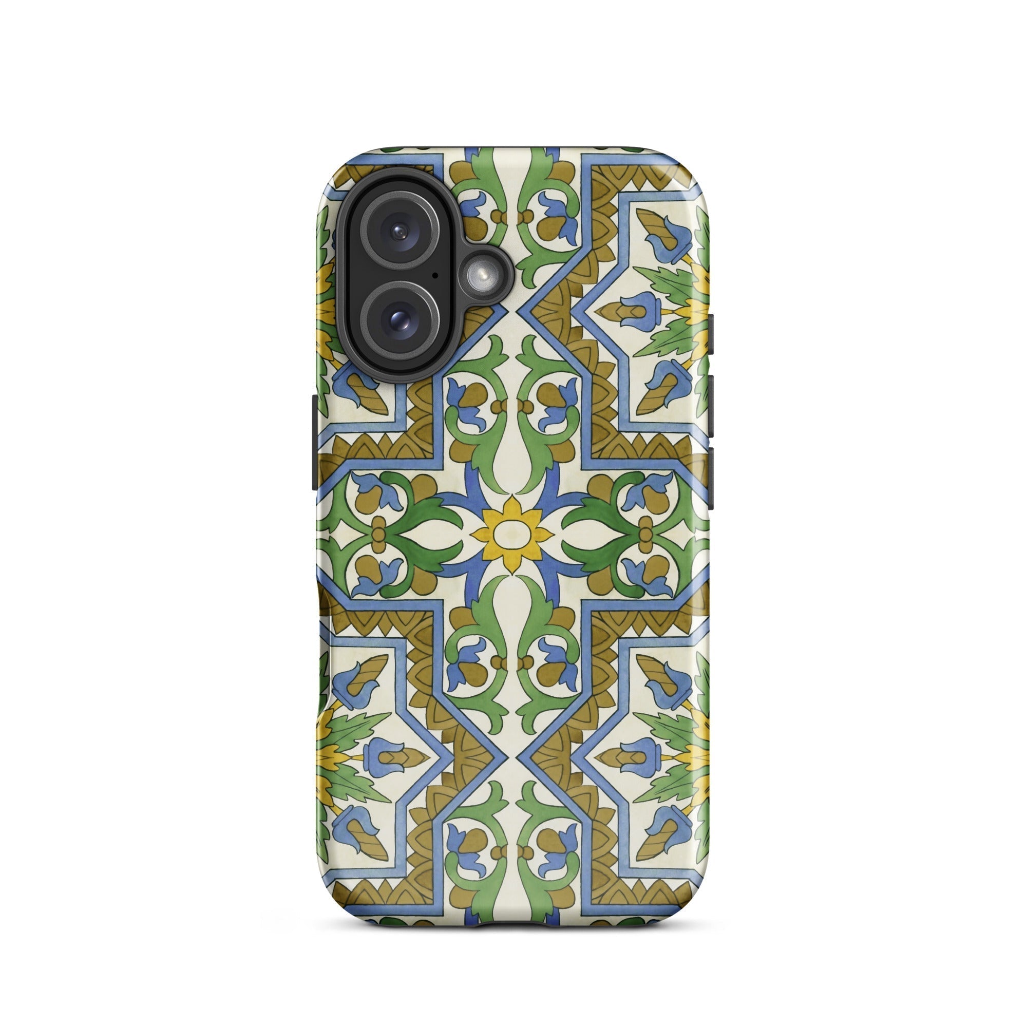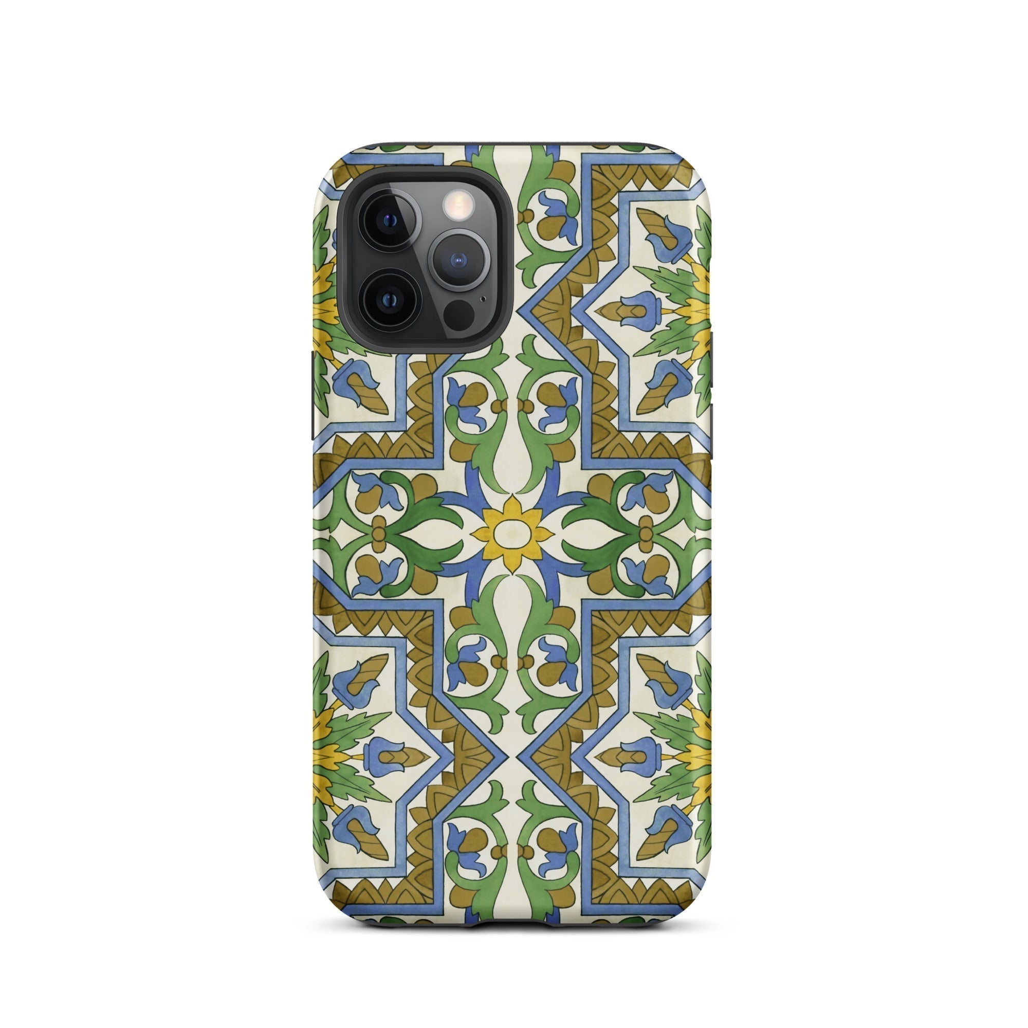 La vibrante geometría morisca baila en tu iPhone, transformando lo mundano en un portal de mística mediterránea. Este estuche no es solo protección; es una rebelión contra la monotonía beige de la tecnología cotidiana. Tú, el nómada digital con ojo para lo extraordinario, te encontrarás perdido en el laberinto de venas azules y arterias doradas que laten a través de un lienzo de crema.