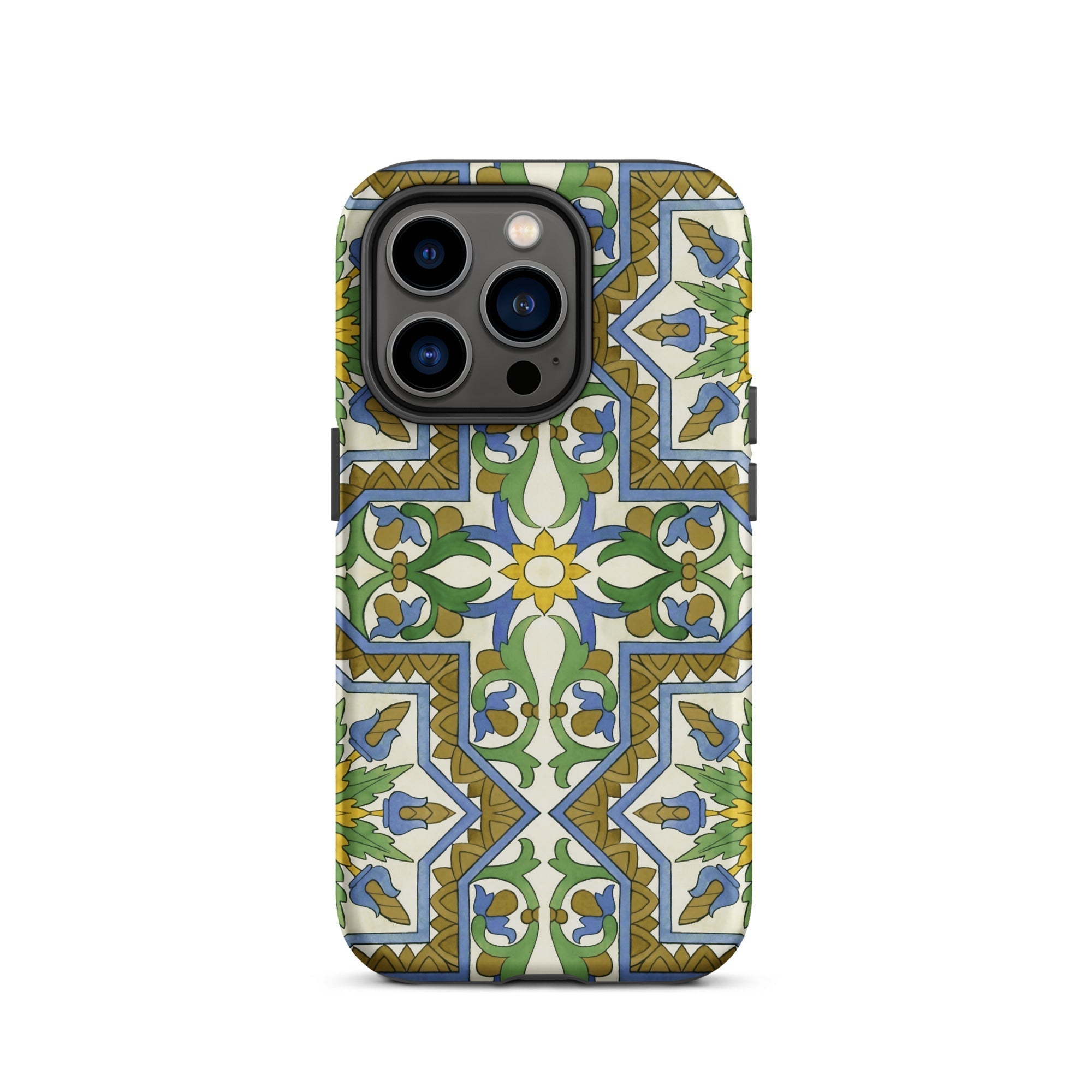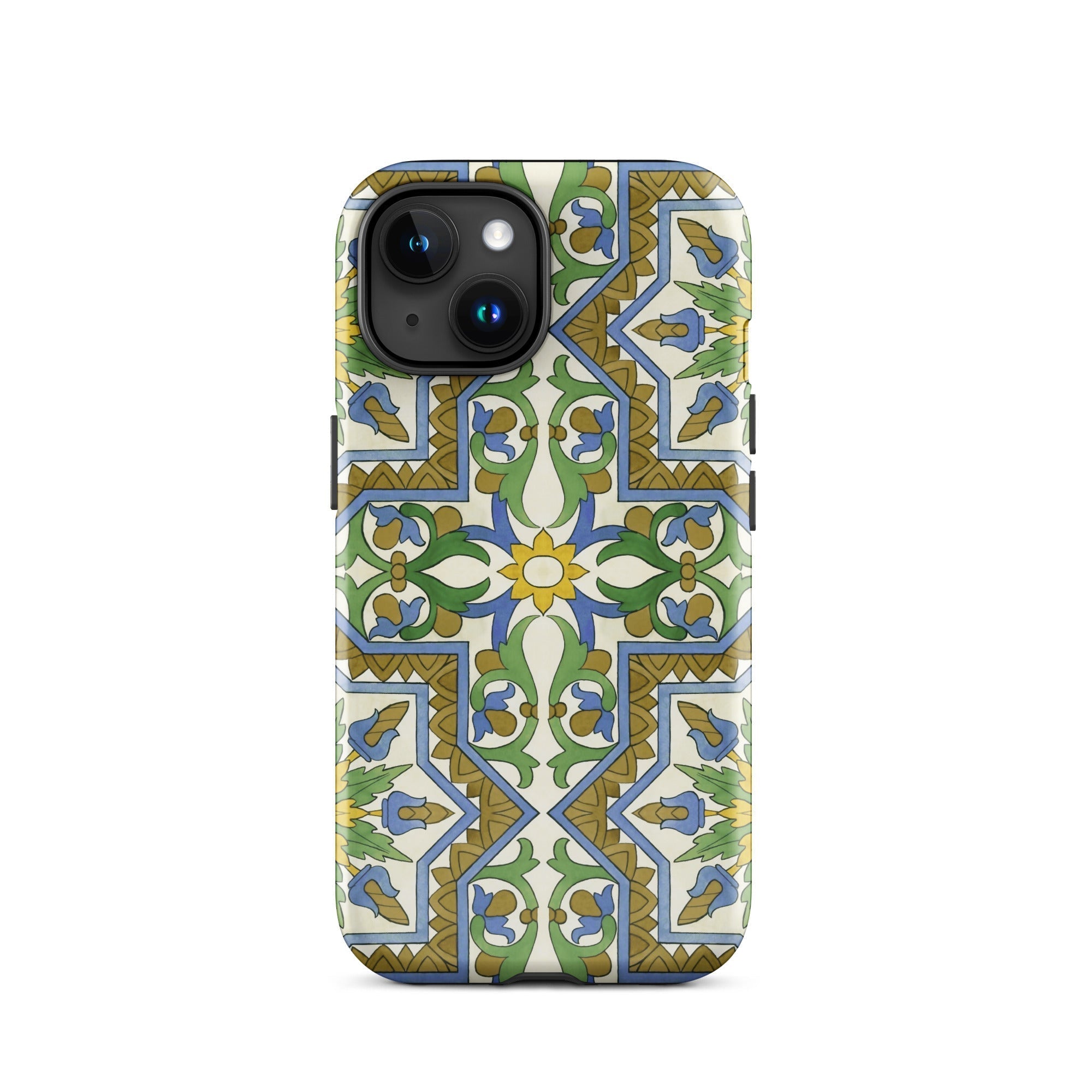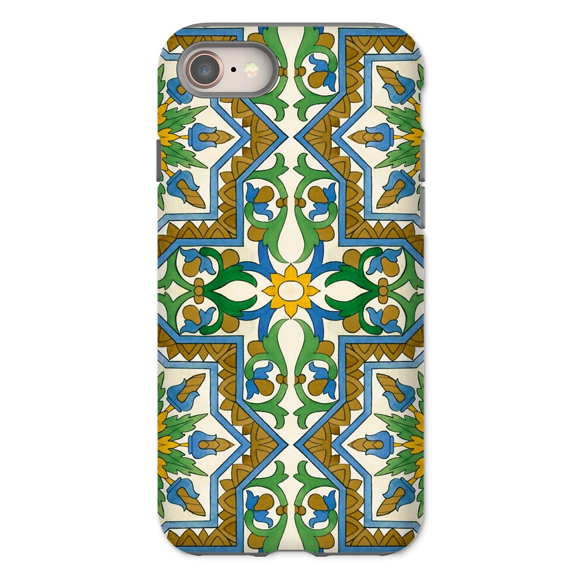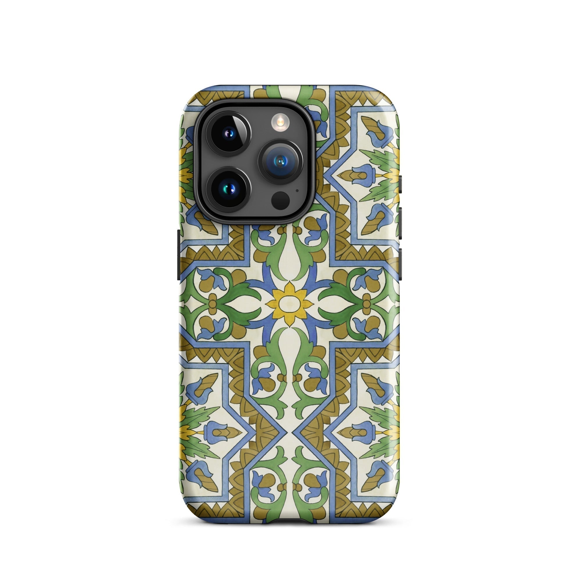 La vibrante geometría morisca baila en tu iPhone, transformando lo mundano en un portal de mística mediterránea. Este estuche no es solo protección; es una rebelión contra la monotonía beige de la tecnología cotidiana. Tú, el nómada digital con ojo para lo extraordinario, te encontrarás perdido en el laberinto de venas azules y arterias doradas que laten a través de un lienzo de crema.