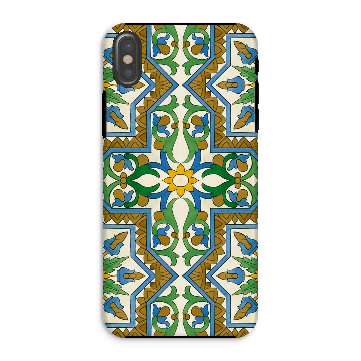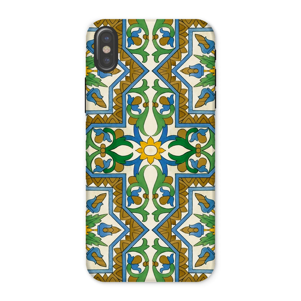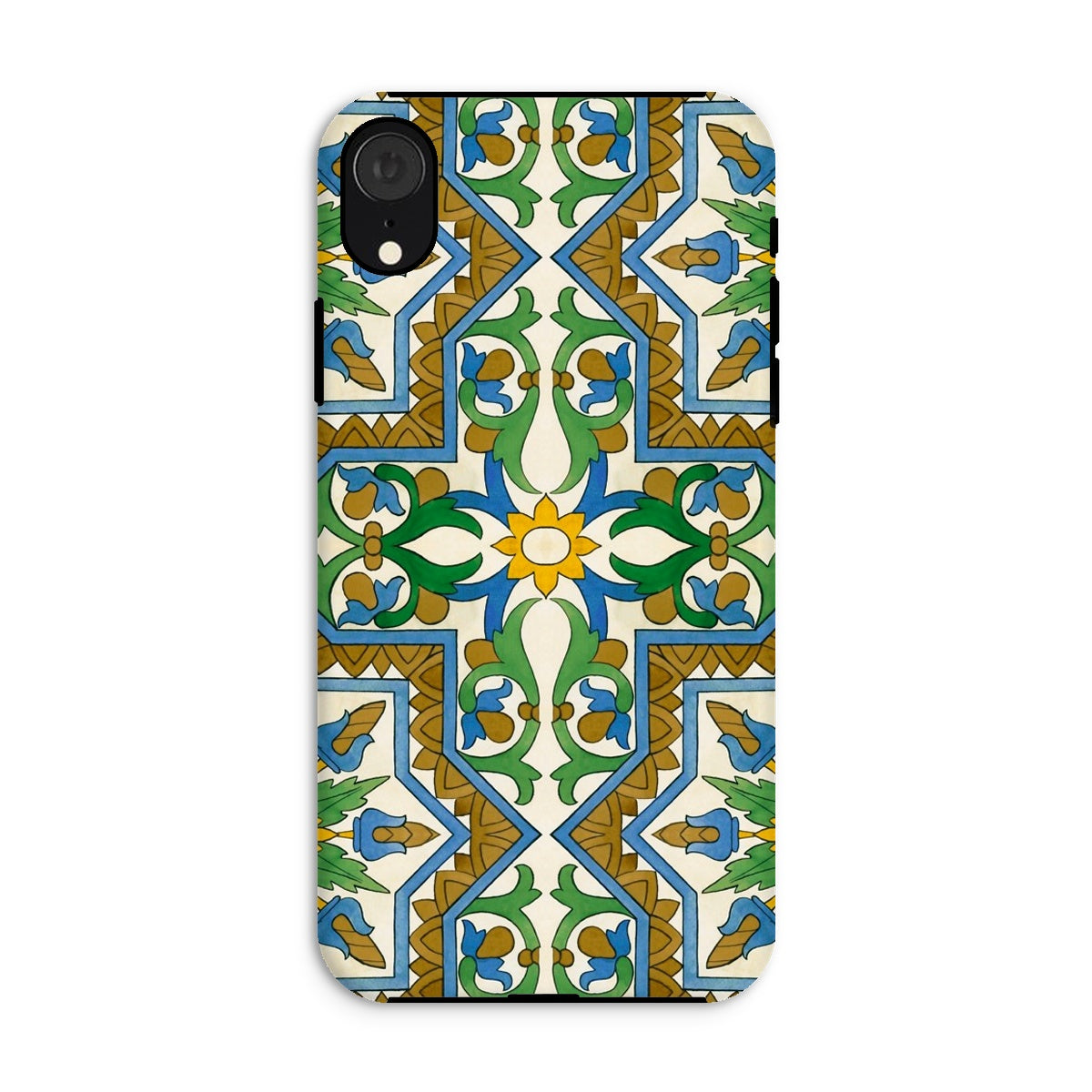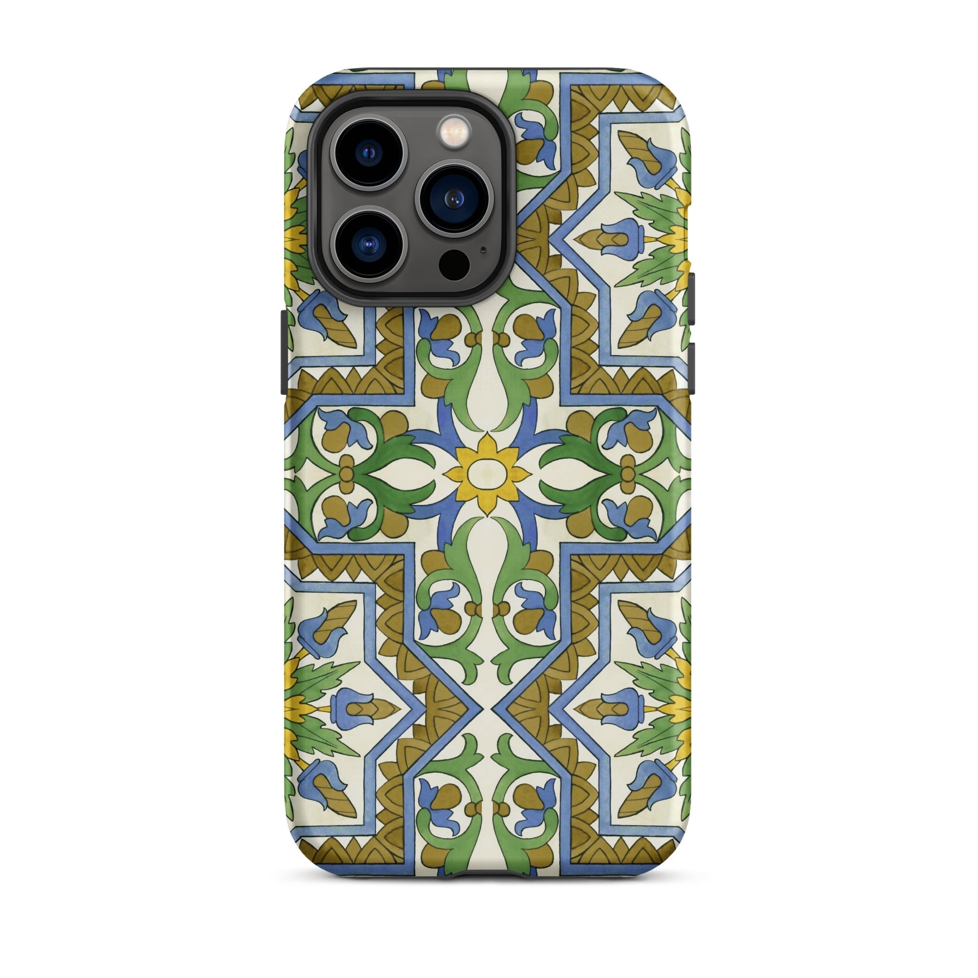 La vibrante geometría morisca baila en tu iPhone, transformando lo mundano en un portal de mística mediterránea. Este estuche no es solo protección; es una rebelión contra la monotonía beige de la tecnología cotidiana. Tú, el nómada digital con ojo para lo extraordinario, te encontrarás perdido en el laberinto de venas azules y arterias doradas que laten a través de un lienzo de crema.