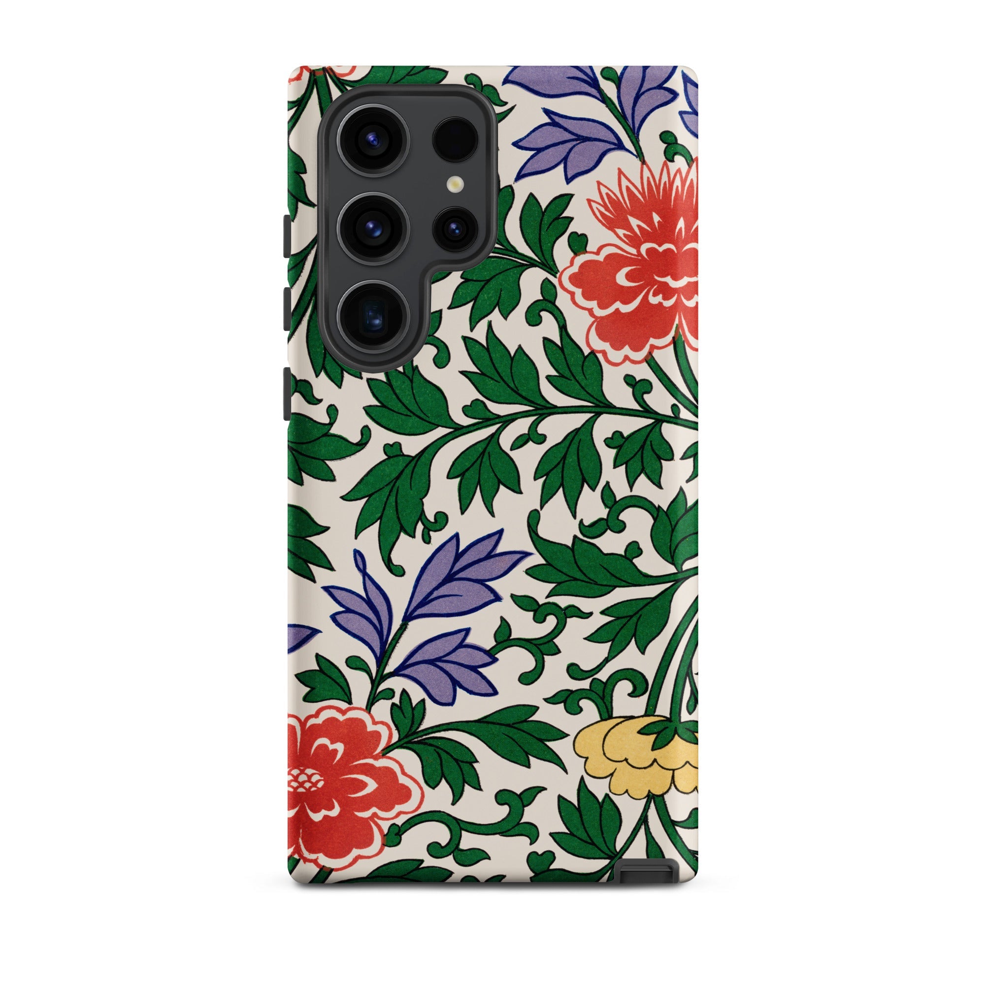 Esta funda de Samsung protege la tecnología moderna mientras encarna la teoría del diseño del siglo XIX, traduciendo la gracia botánica en un objeto funcional. Lo que una vez floreció en textiles, manuscritos y paneles arquitectónicos ahora rodea tu dispositivo, brillando con el diálogo atemporal entre Oriente y Occidente, arte y artesanía, historia y mano, pétalo y píxel.