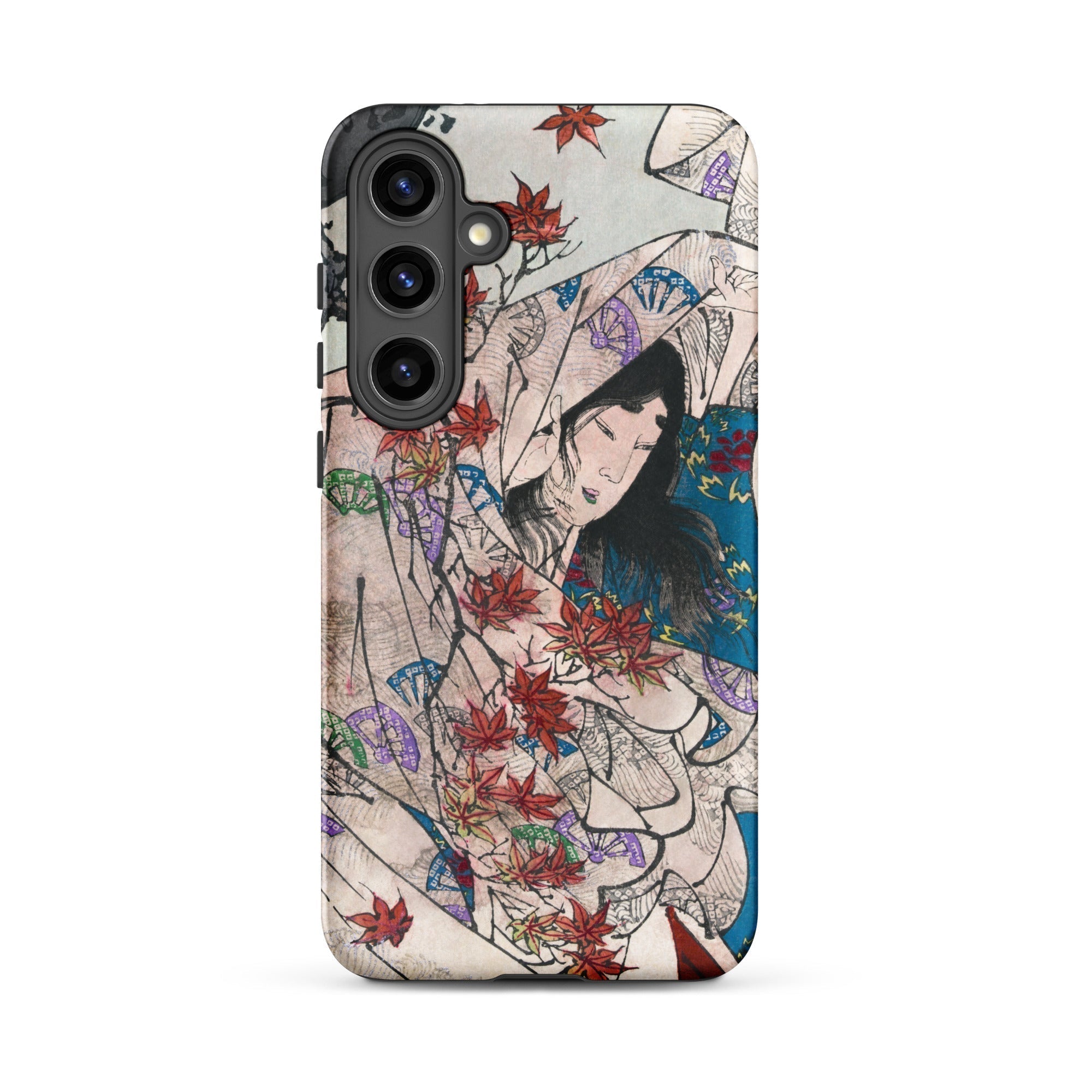 La maestría de Yoshitoshi lleva la temporada a su misma postura, una tranquila rendición al cambio del año. Este estuche Samsung lleva la belleza fugaz del momiji-gari, convirtiendo tu dispositivo en una pequeña pantalla de elegancia de la era Meiji.