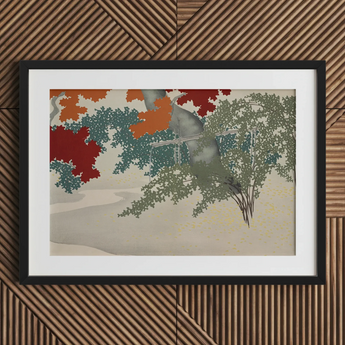 Un río de silencio se curva a través del oro caído, donde las hojas de arce arden como presagios susurrantes contra un cielo pálido. En Maple de Kamisaka Sekka, la escena no es meramente una visión otoñal—es un tranquilo desenredo del tiempo.