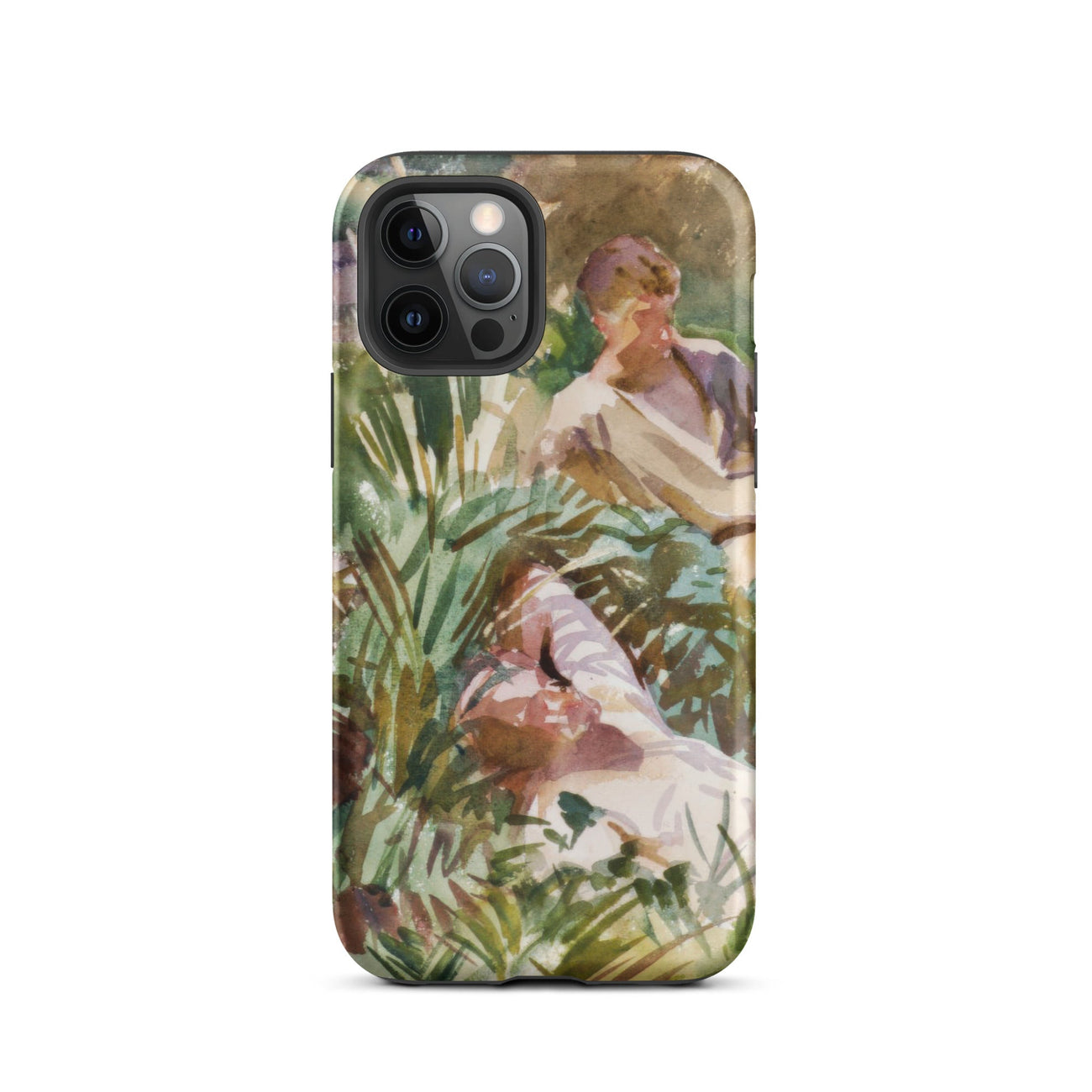 La luz se filtra a través del follaje, proyectando sombras intrincadas que muestran la maestría técnica de Sargent. Esta funda no solo protege tu teléfono—te transporta a un tierno interludio en medio del caos de la Primera Guerra Mundial.