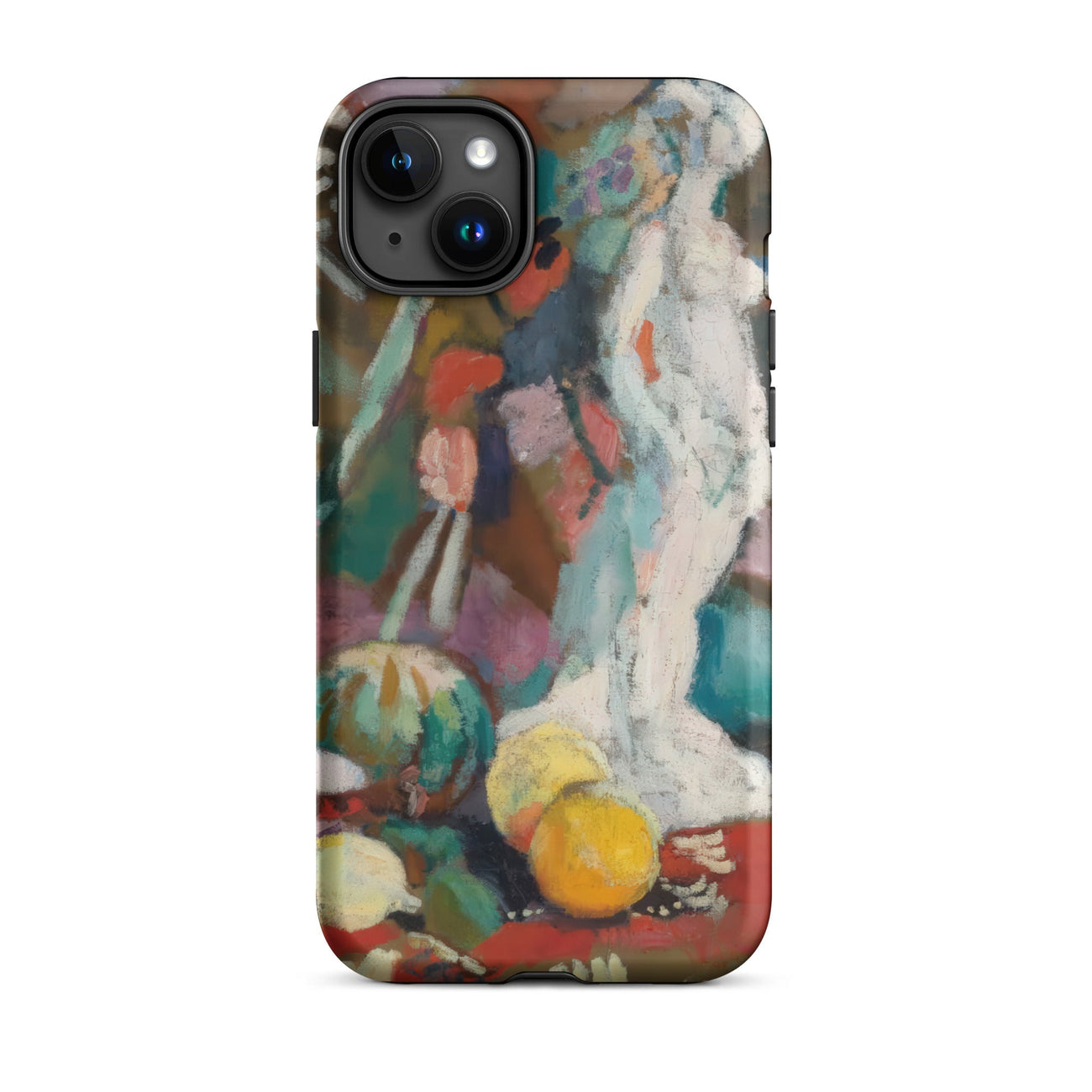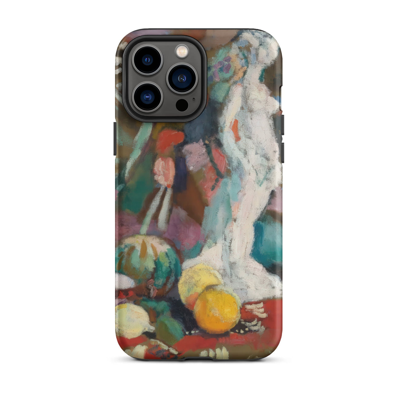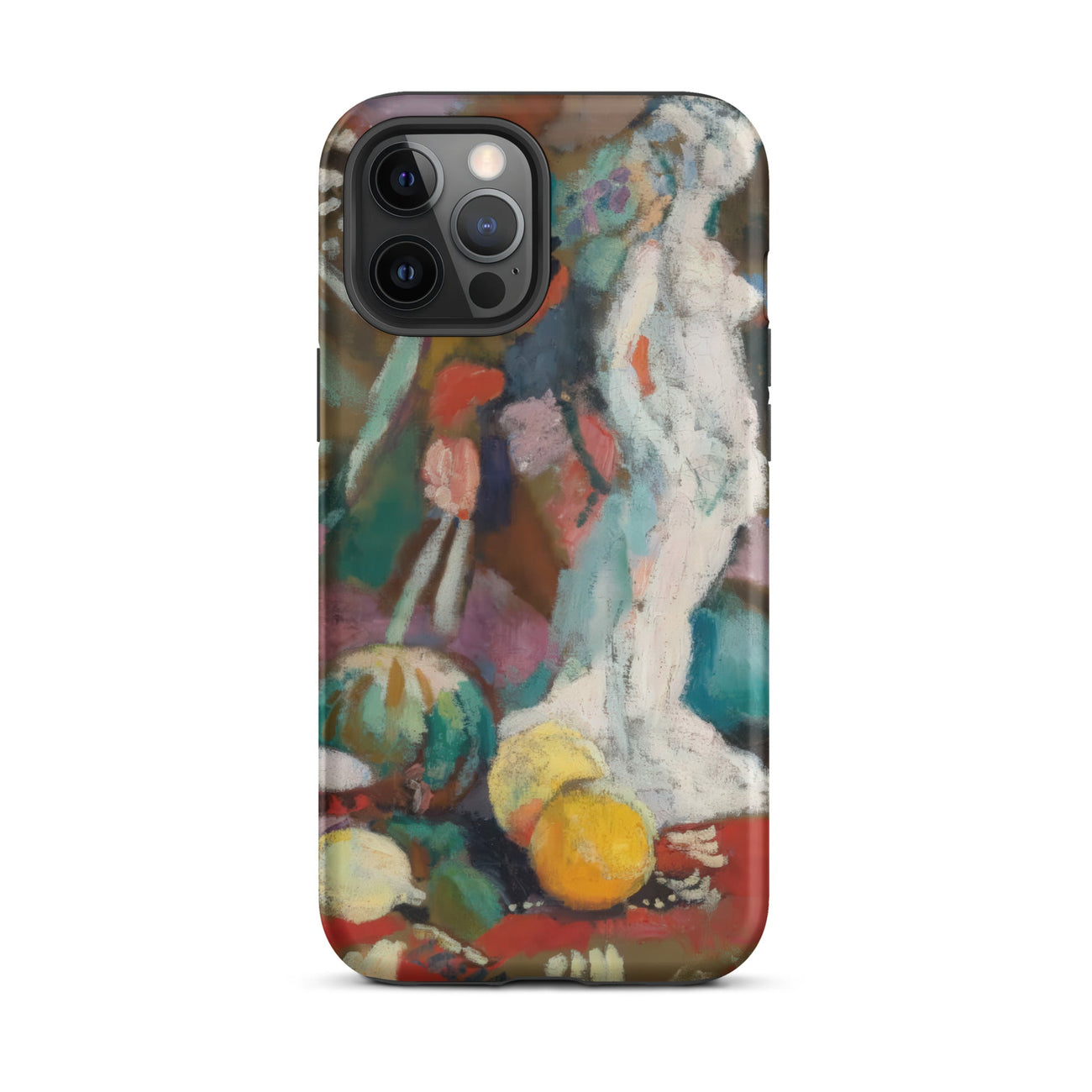 Empapado en la intensidad febril del Fauvismo, esta funda de iPhone de Henri Matisse transforma tu dispositivo en un portal de rebelión modernista. Naturaleza muerta con figura de yeso pulsa con color crudo y desenfrenado—turquesa y bermellón chocan, disolviendo la forma en sensación. La escultura blanca, un eco de la tradición grecorromana, se alza espectral en medio de una naturaleza muerta de ensueño, donde la perspectiva aplanada y el trazo salvaje desafían la rigidez del realismo clásico.