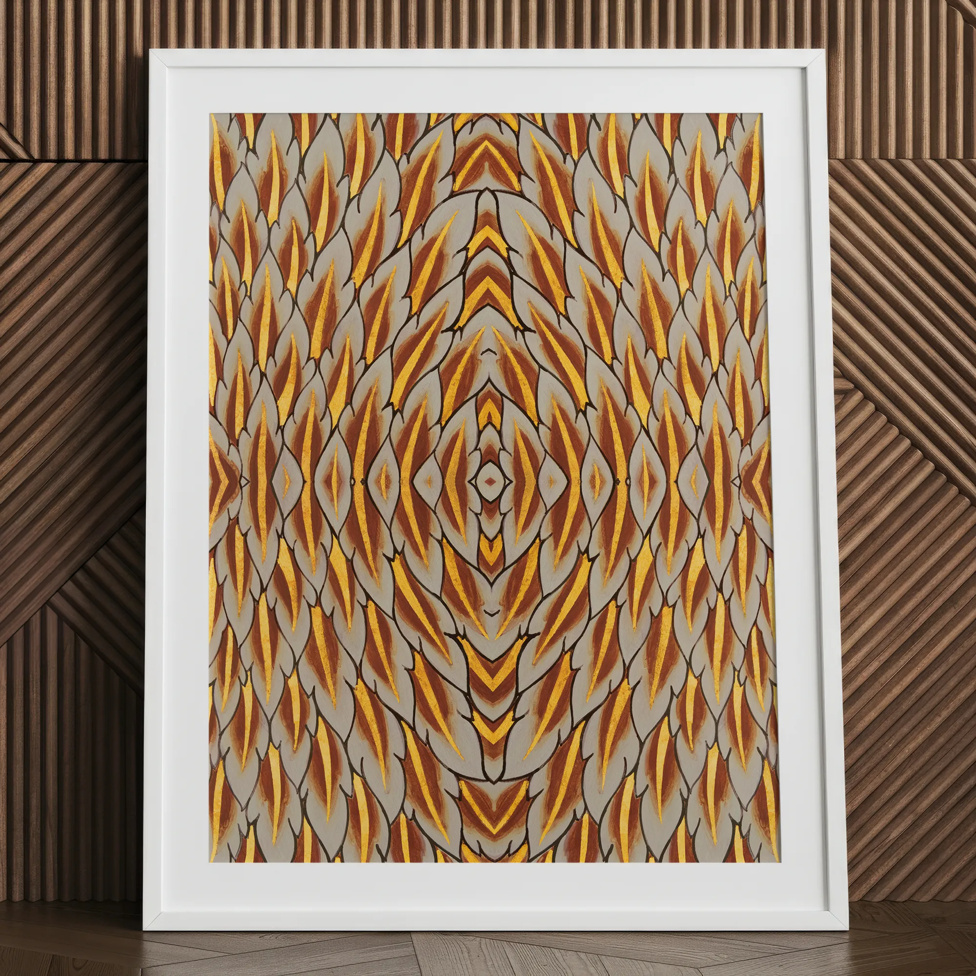 Cuelgue esta visión trascendental en su hogar e invitará a viajes diarios a través del tiempo y el espacio. La mirada fractalizada de la Garuda te llamará a explorar las profundidades de tu imaginación desde adentro hacia afuera y al lado de la pluma.