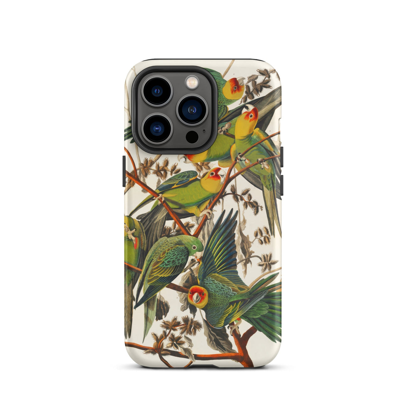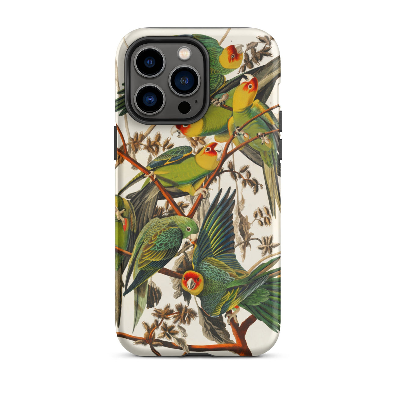 Un mundo perdido sostenido en tus manos. Esta funda de iPhone del loro de Carolina transforma tu dispositivo en un lienzo de belleza desaparecida, adornado con la ilustración vintage de pájaros de John James Audubon del único loro nativo de América del Norte. Un plumaje esmeralda exuberante, coronas ardientes y alas con tintes dorados estallan desde el intrincado enredo de ramas, inmortalizando una especie borrada de la naturaleza pero viva para siempre en esta obra de arte histórica de la vida silvestre.