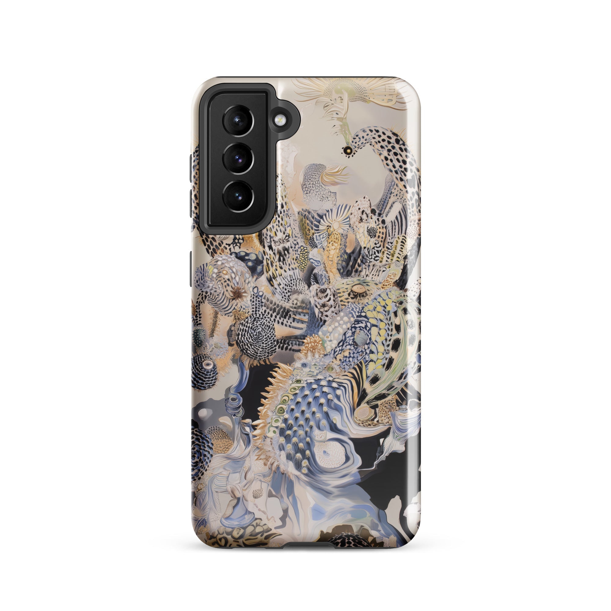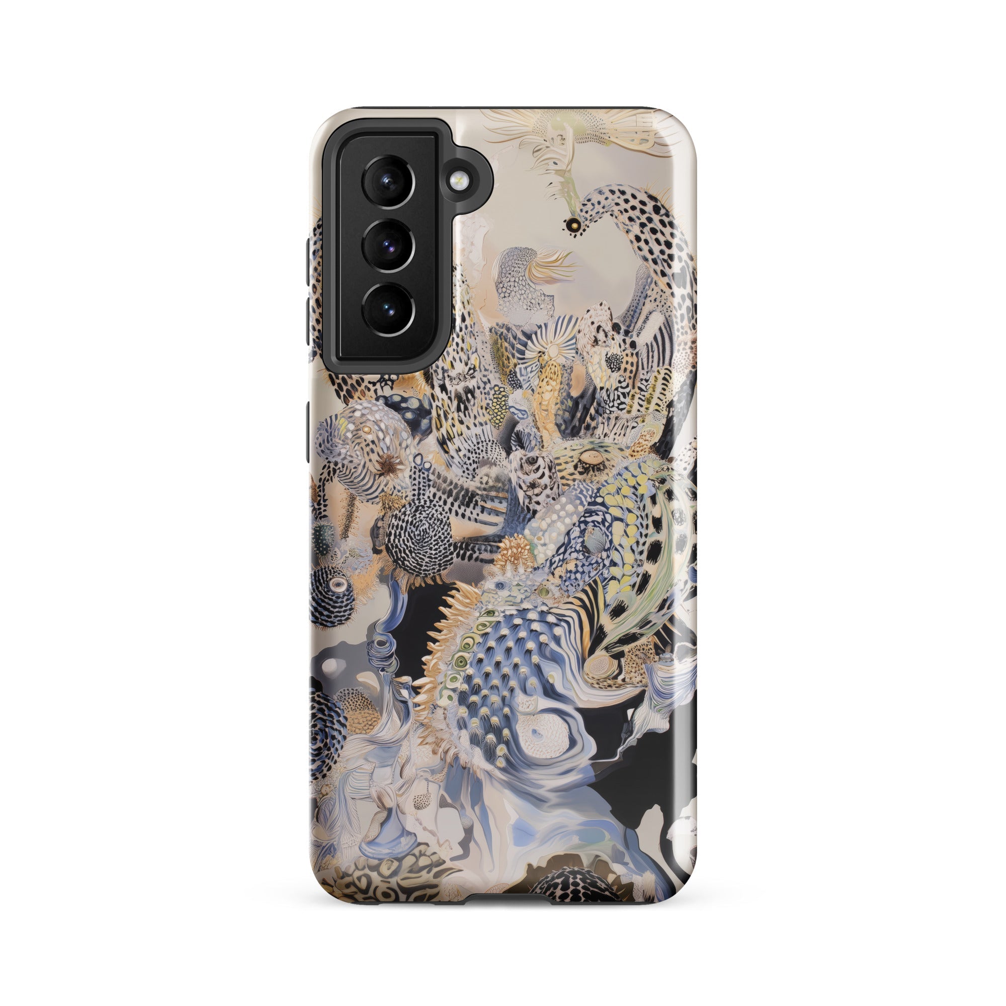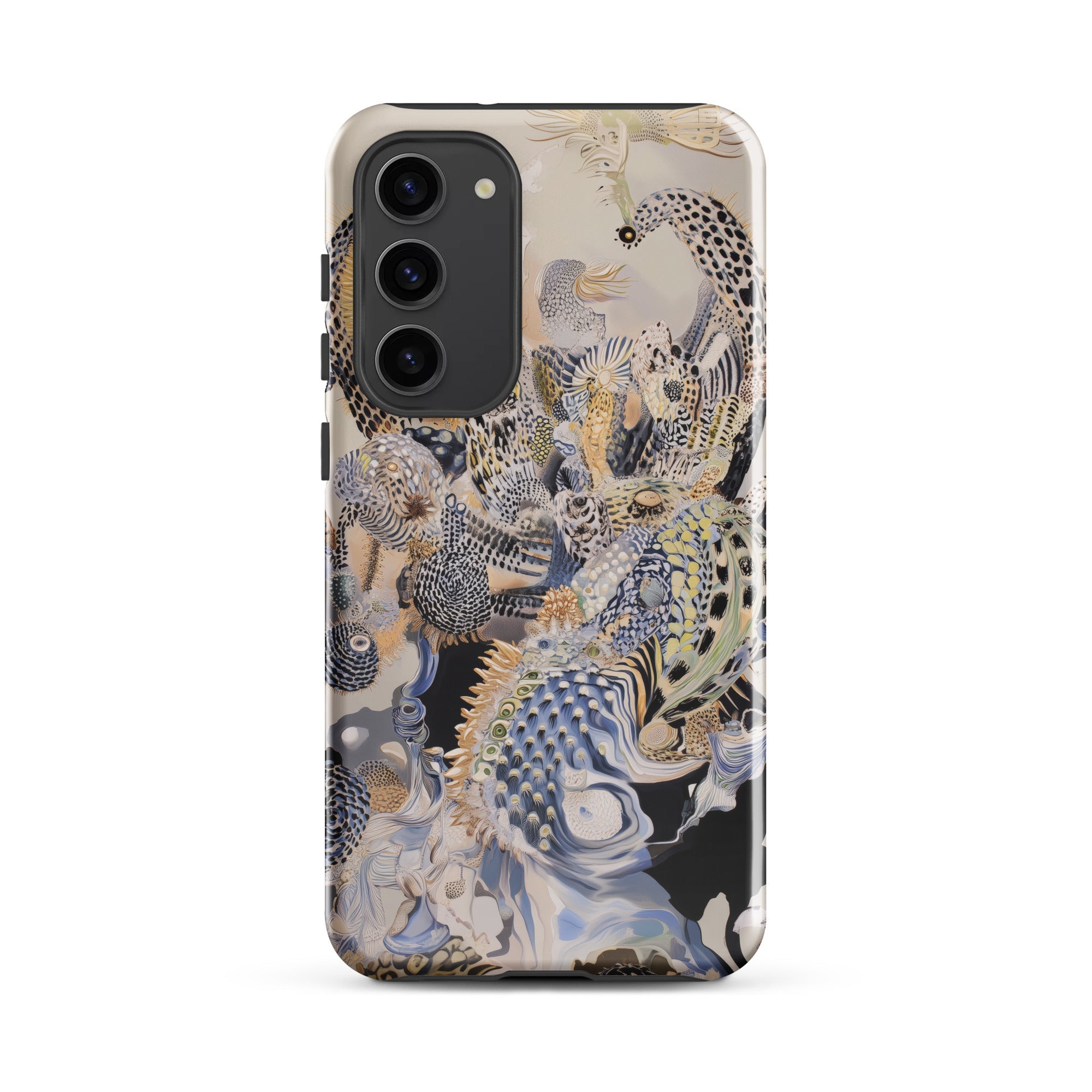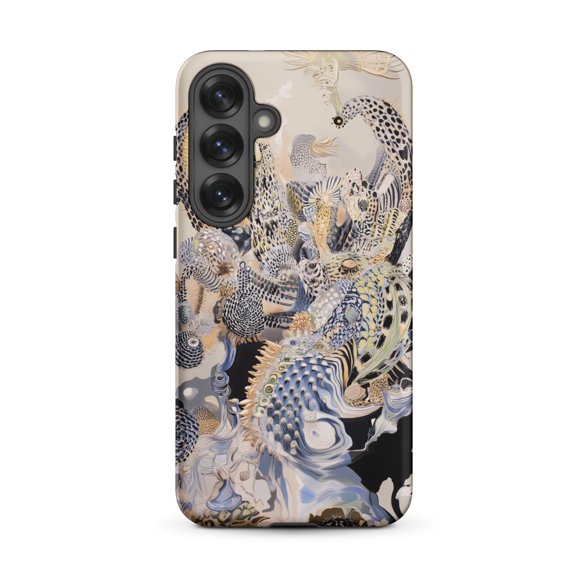 Este estuche de Samsung lleva una ecología alienígena de arrecifes surrealistas, donde la ictiología fantástica y la evolución especulativa convergen en pura fantasmagoría acuática.