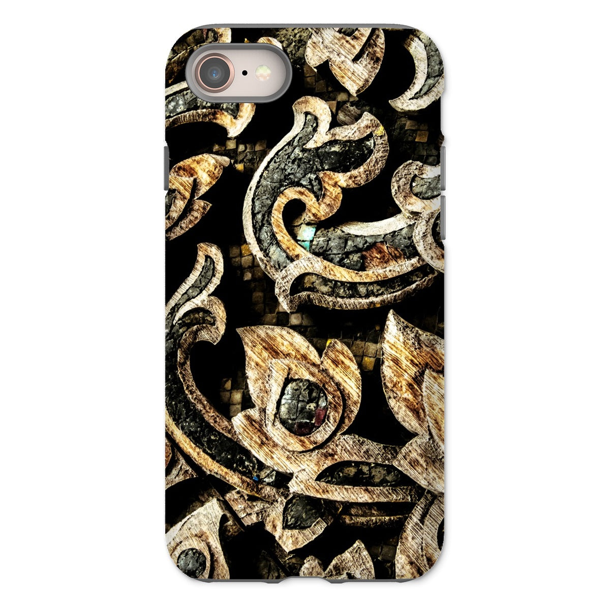 La funda para iPhone Against The Grain Ancient Thai Woodwork Art combina tecnología de vanguardia con arte atemporal, transformando tu dispositivo en una galería portátil. Esta reliquia de la era digital muestra el pináculo de la maestría en tallado de madera tailandés, su superficie es una crónica viviente de la artesanía centenaria. Intrincadas espirales entrelazadas - que evocan la danza cósmica del simbolismo budista - están meticulosamente grabadas en la fachada de la funda.