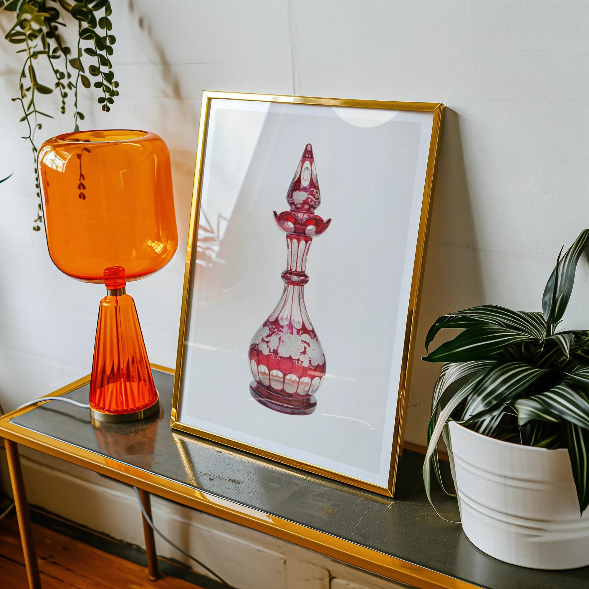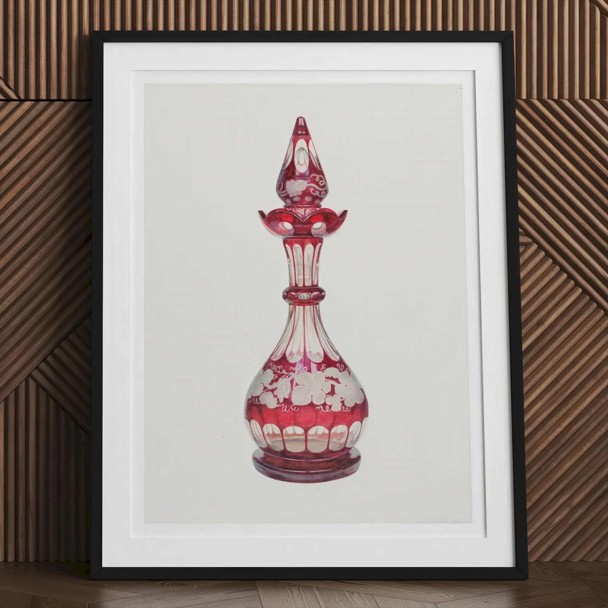 Decantador de vidrio rojo - Frank M. Keane Estampado de arte decorativo