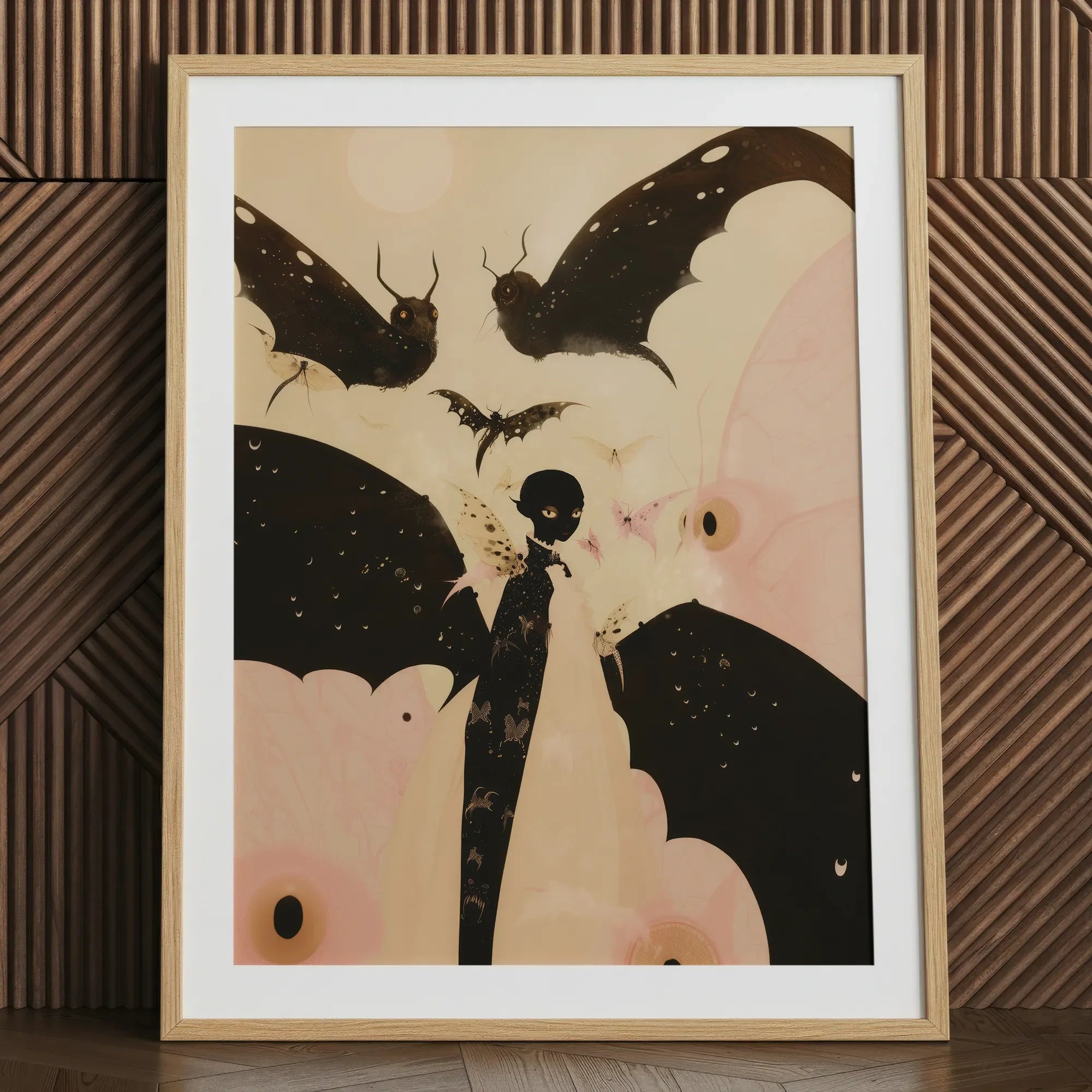 Estamos presenciando la encrucijada de su viaje: el momento donde la fantasía y la naturaleza se fusionan en una rebelión silenciosa y elegante. En esta surrealista obra de arte de mariposa, la transformación no es solo una idea; es el latido del corazón de la historia. La oscura fantasía de sus alas, la suavidad del cielo rosado y el eco atemporal de las criaturas que giran a su alrededor, son todos hilos de un mundo donde incluso el cambio más pequeño puede remodelar el universo.
