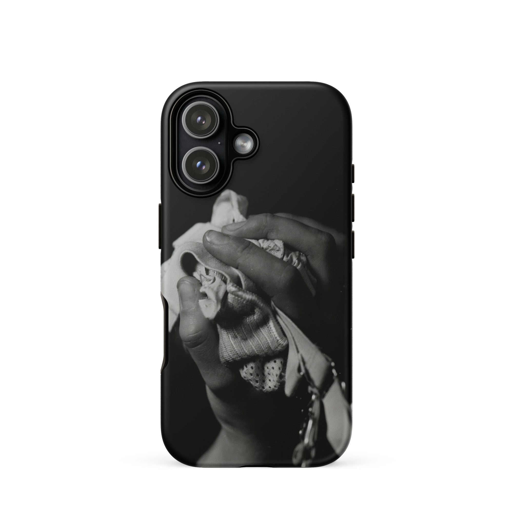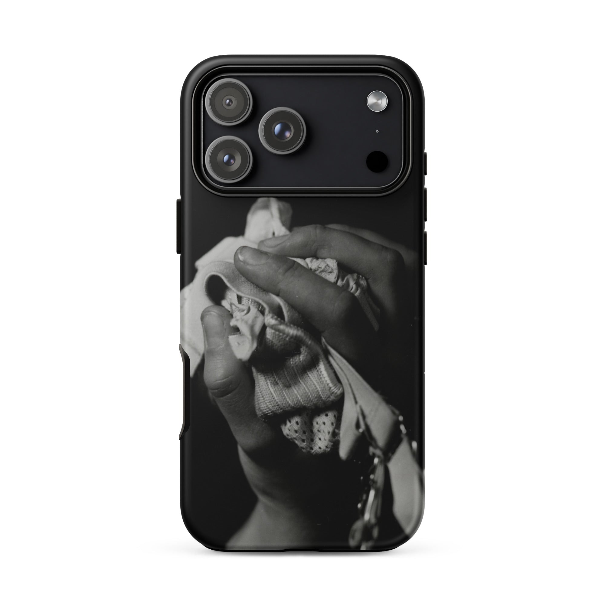 Aquí, la moda no se lleva; se agarra, se lucha con ella, se mantiene cautiva. Una funda de teléfono transformada en un artefacto de anhelo y control.