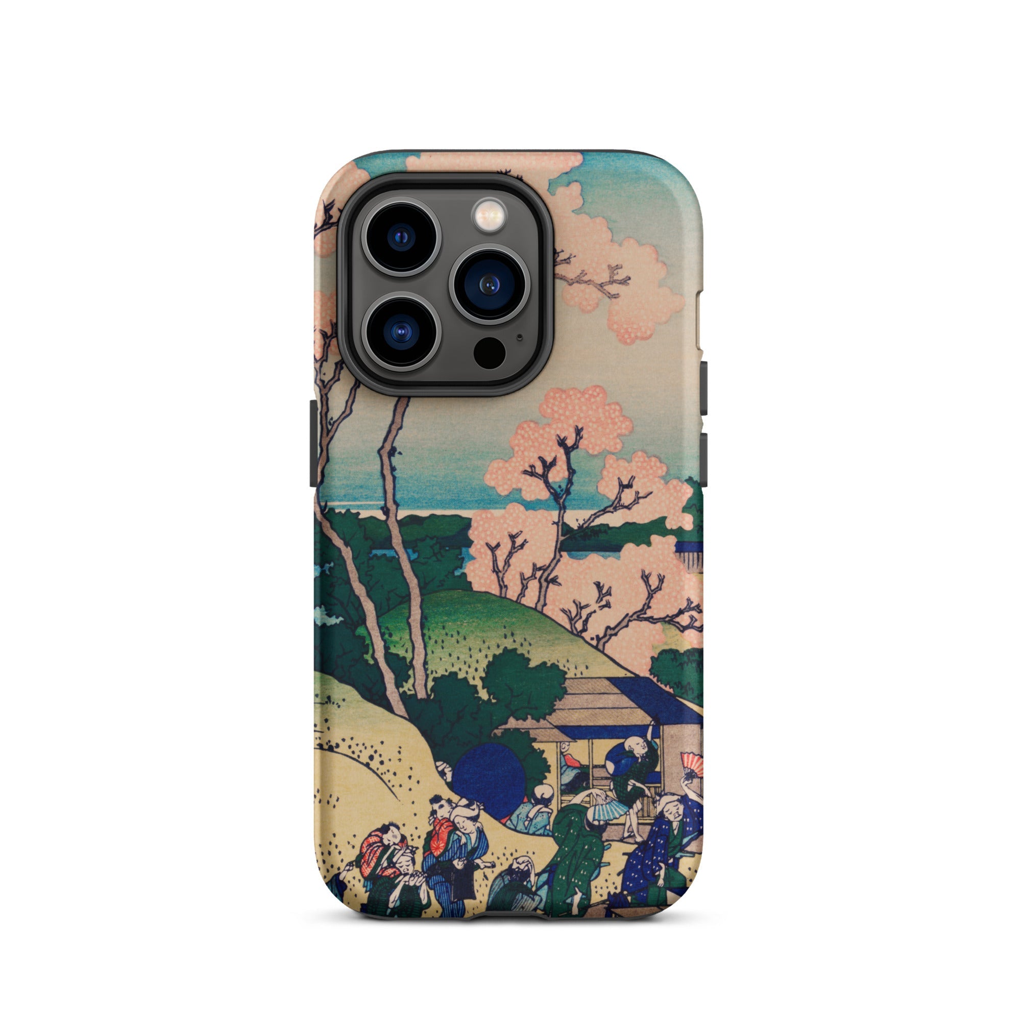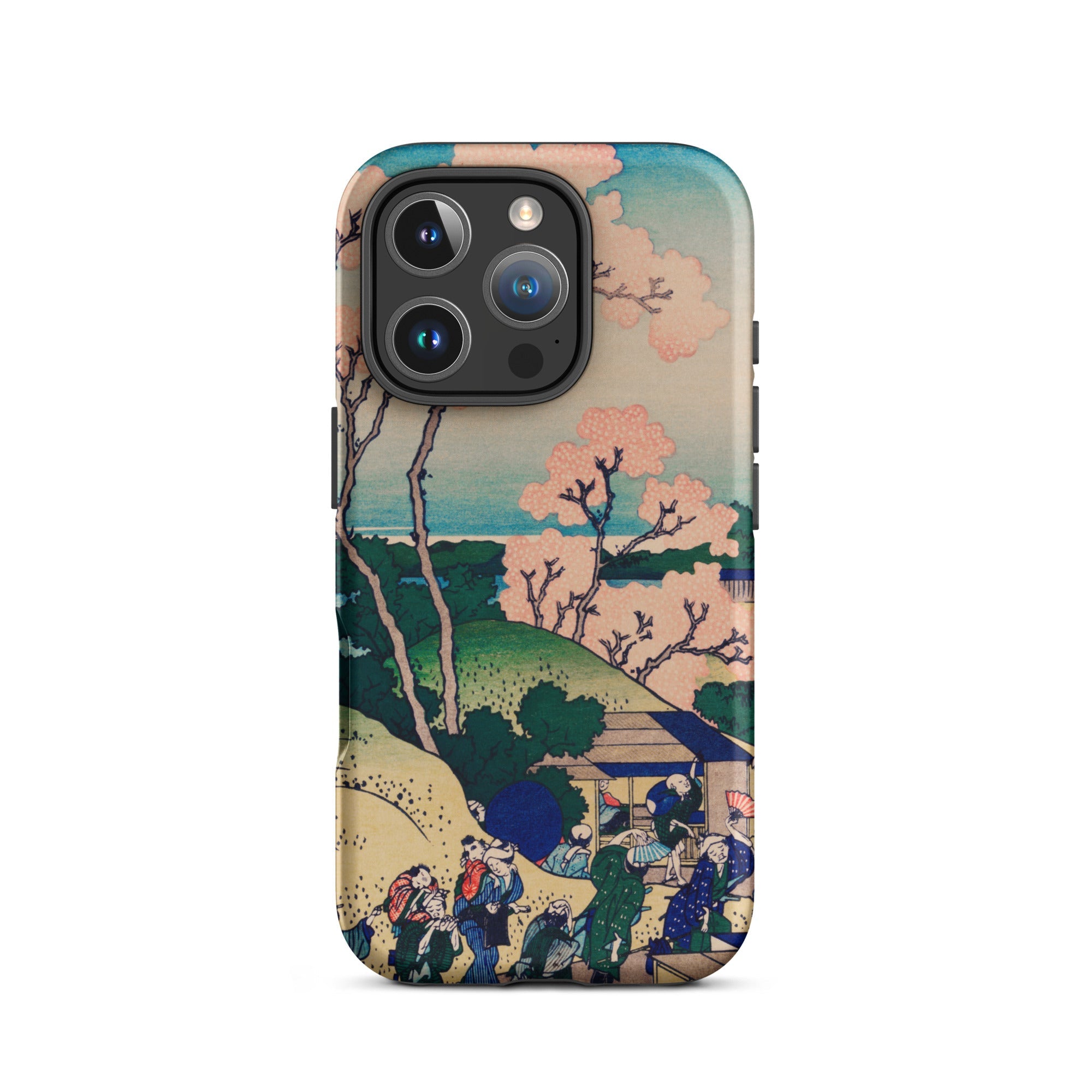 Hokusai congela esta primavera de Edo en el umbral del movimiento. En la funda de tu iPhone, no es nostalgia—es compresión. Siglos doblados en celulosa. Pétalos como aliento. Cada manga y sandalia preservada por pigmento y pulpa.