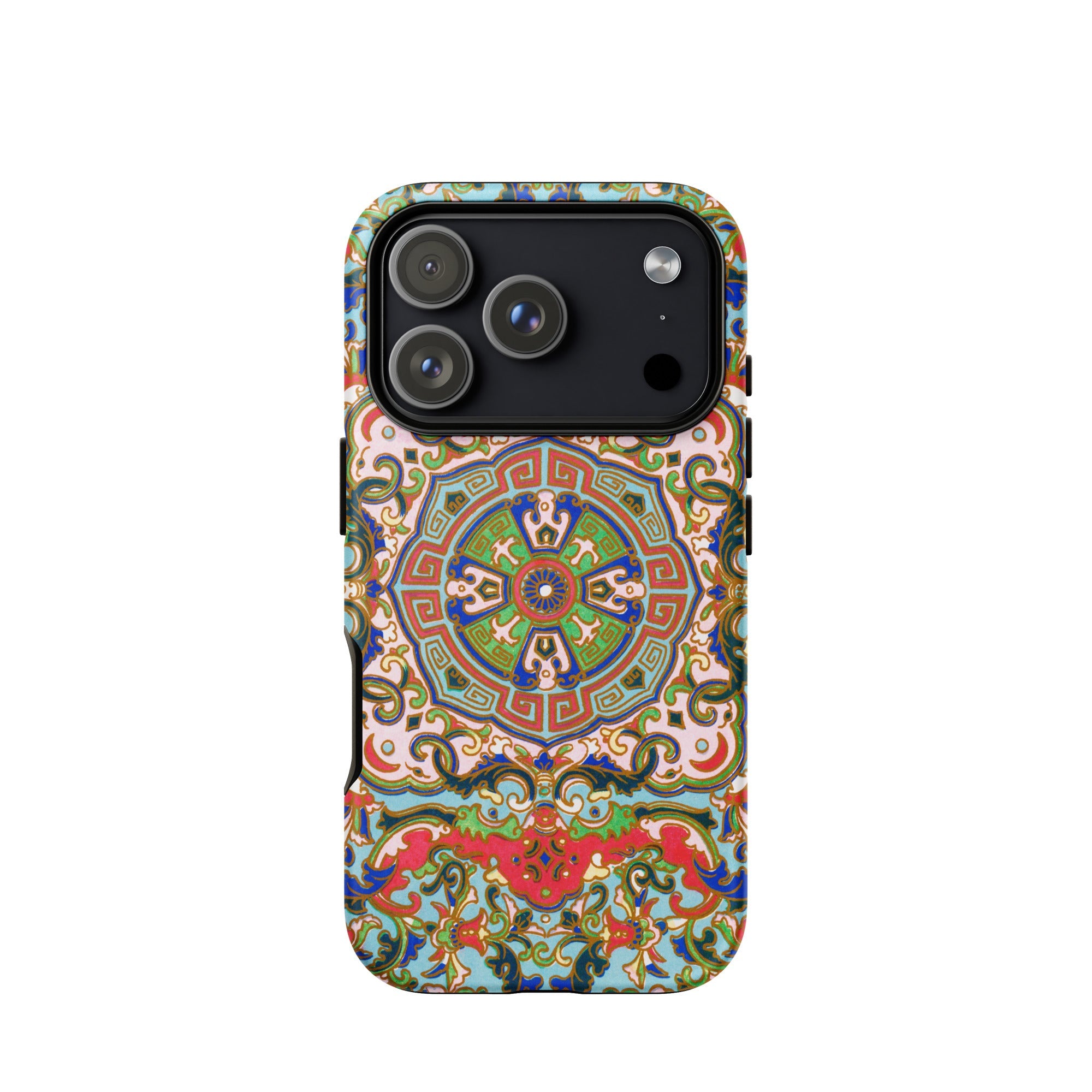 La locura de mandala estalla en tu iPhone, un caos caleidoscópico de arte inspirado en chino. La visión victoriana de Owen Jones explota en forma digital, fusionando hacia el este y el oeste en un baile desenfrenado de color y geometría. Estás sosteniendo una revolución de bolsillo, una rebelión cromolitográfica contra lo mundano.