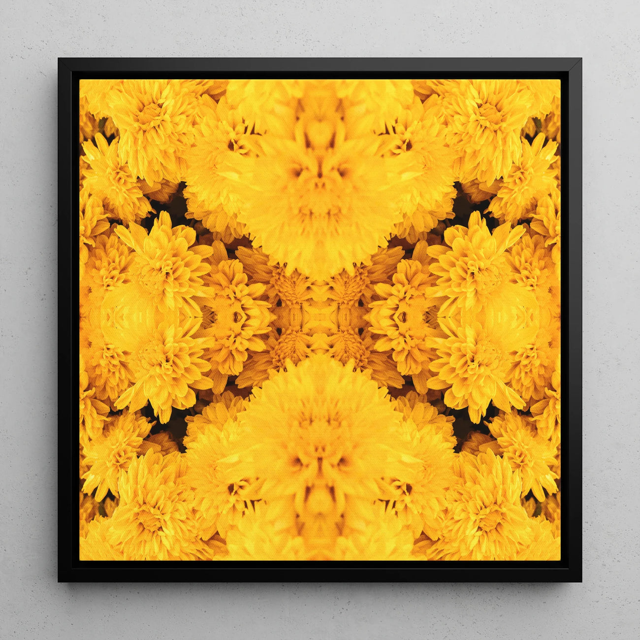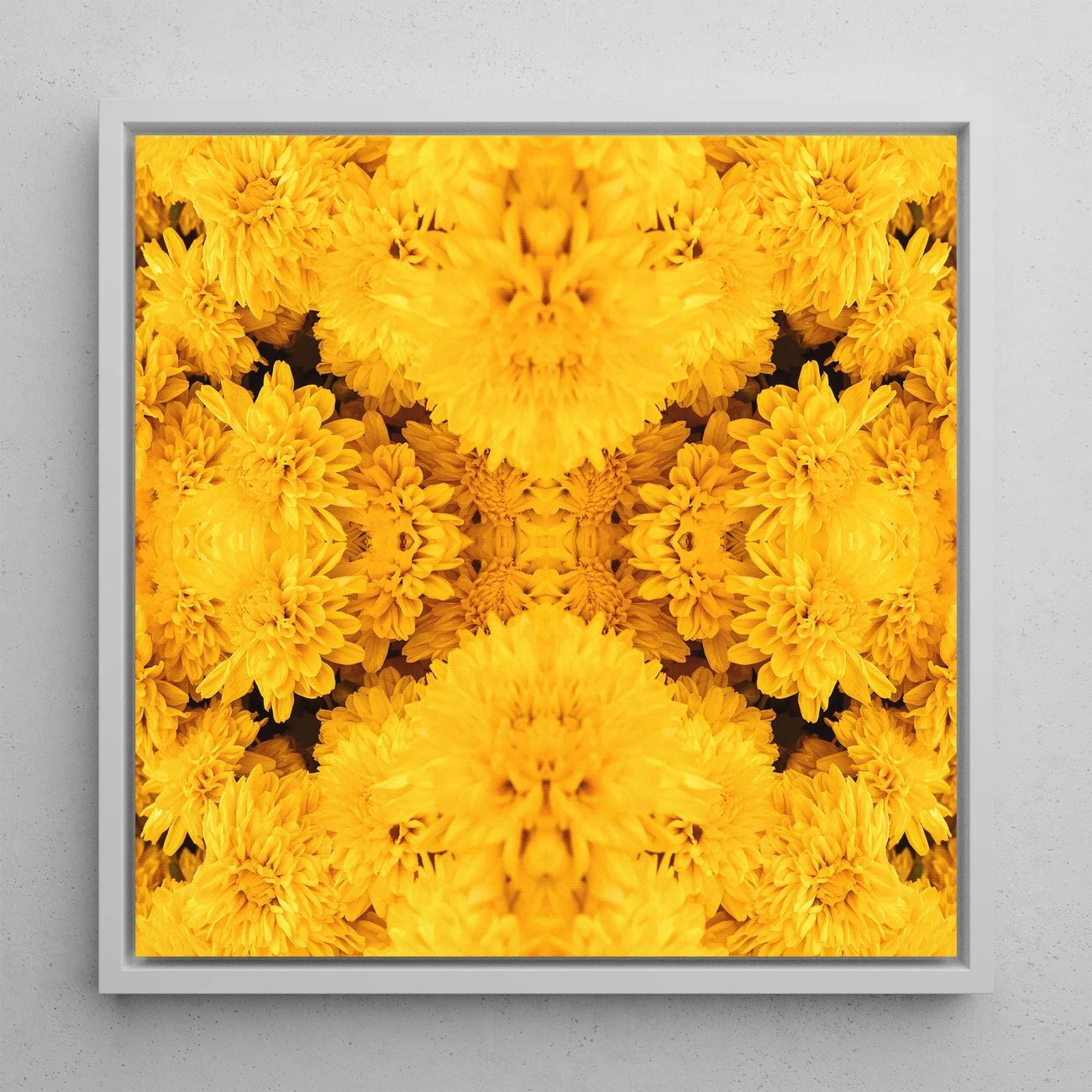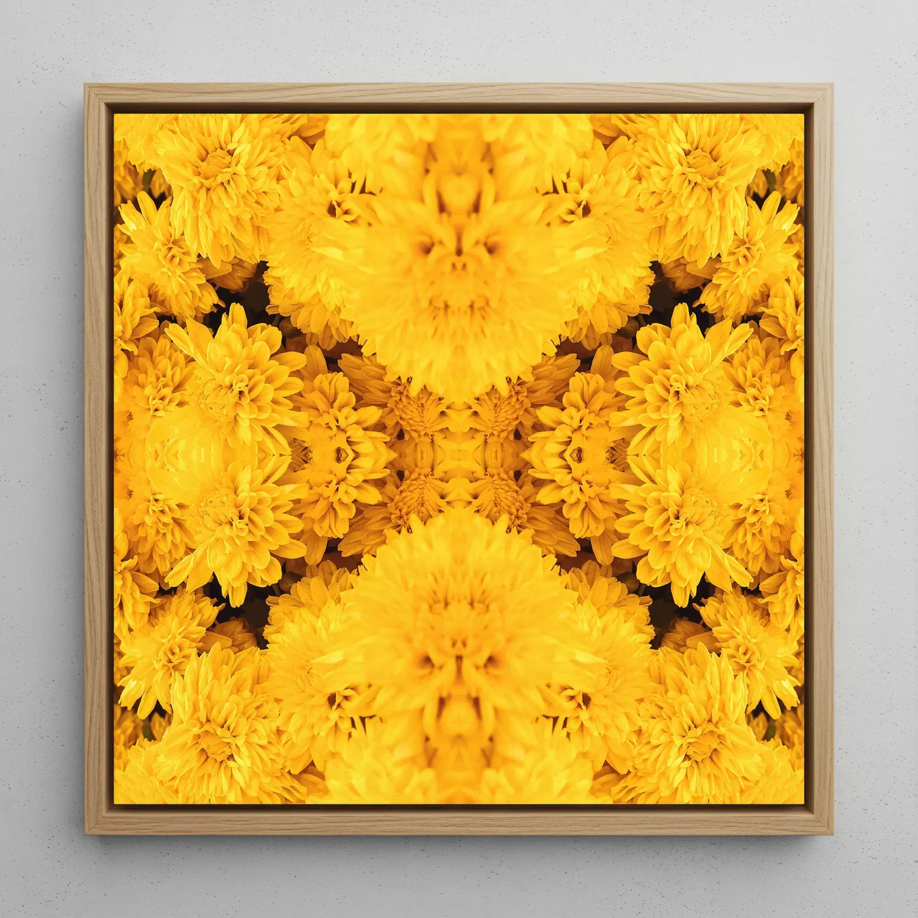 Sumerge en el encanto vanguardista de "Gold Rush," una lienzo enmarcado que transmuta tu espacio en un ensueño inducido por crisantemos. Esta obra simétrica evoca una fantasmagoría botánica, donde los pétalos bañados por el sol proliferan en patrones hipnotizantes. Al contemplar este cuadro caleidoscópico, serás testigo de la geometría de la naturaleza desplegándose en una danza hipnótica de forma y color.