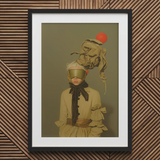 El peso del espectáculo y el secreto colisionan en este retrato de moda victoriana vanguardista, donde el surrealismo se viste de indulgencia escultórica. Una figura sin género, desvinculada del tiempo, emerge envuelta en ocre apagado, atada a la cintura por un cinturón de cuero desgastado. Las mangas susurran de exceso Rococó, voluminosas y adornadas con volantes en cascada. Sin embargo, la postura es de restricción post-apocalíptica. Una paradoja hecha carne.