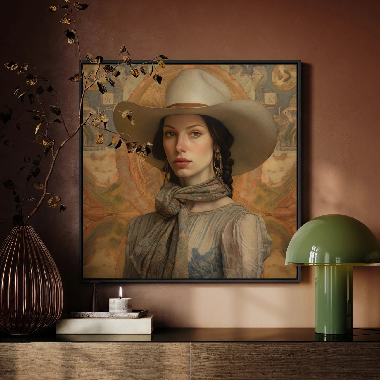 Jamie - Mujer Vaquera Lesbiana en Lienzo Enmarcado