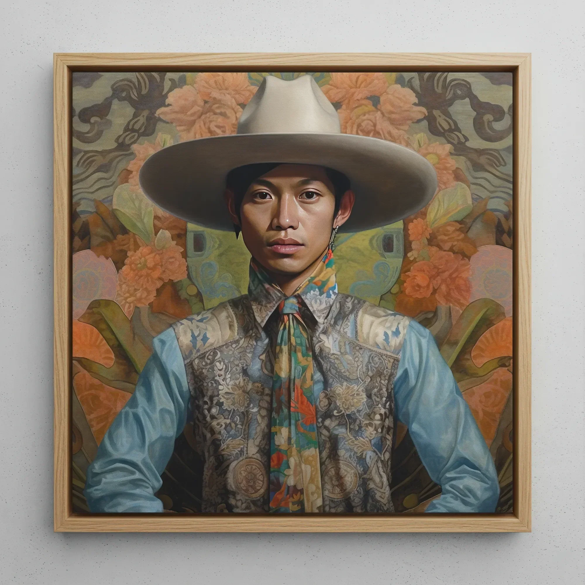 Junada - Arte de vaquero gay malayo en lienzo enmarcado