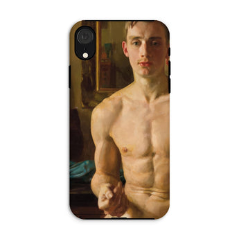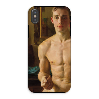 Un cuerpo esculpido por la luz, equilibrado entre el movimiento y la quietud. Esta funda para iPhone captura 'The Boxer' de Konstantin Andreevich Somov, un exquisito estudio en realismo neoclásico, donde cada pincelada reverencia la forma masculina en su expresión más poética. Los músculos ondulan bajo una piel de impasto dorado, mientras la mirada inquebrantable del sujeto sugiere una meditación del artista sobre la fragilidad masculina, una tensión entre lo heroico y lo íntimo.