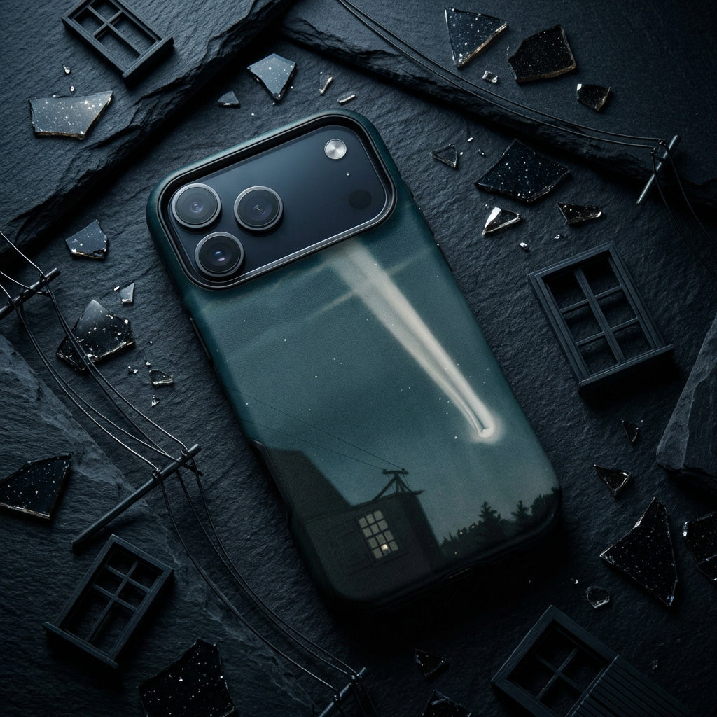 Los quince litografías astronómicas de Trouvelot, publicadas en 1882, siguen siendo referentes de la ilustración científica del siglo XIX, donde el Observatorio del Colegio de Harvard se encontró con la prensa cromolitográfica. Esta funda de teléfono sostiene esa maravilla de la Edad Dorada—cola de cometa, estrellas dispersas, atmósfera aguamarina—fusionada con tu transporte diario.
