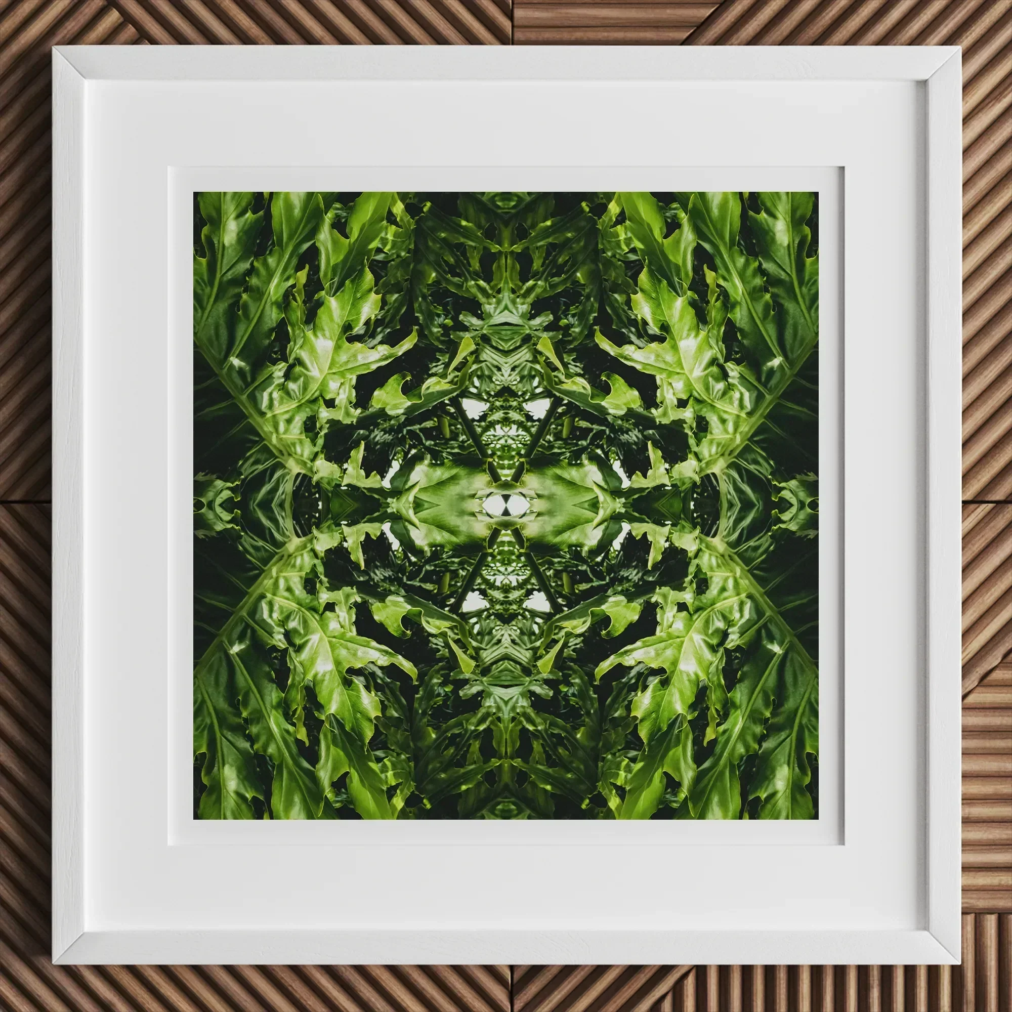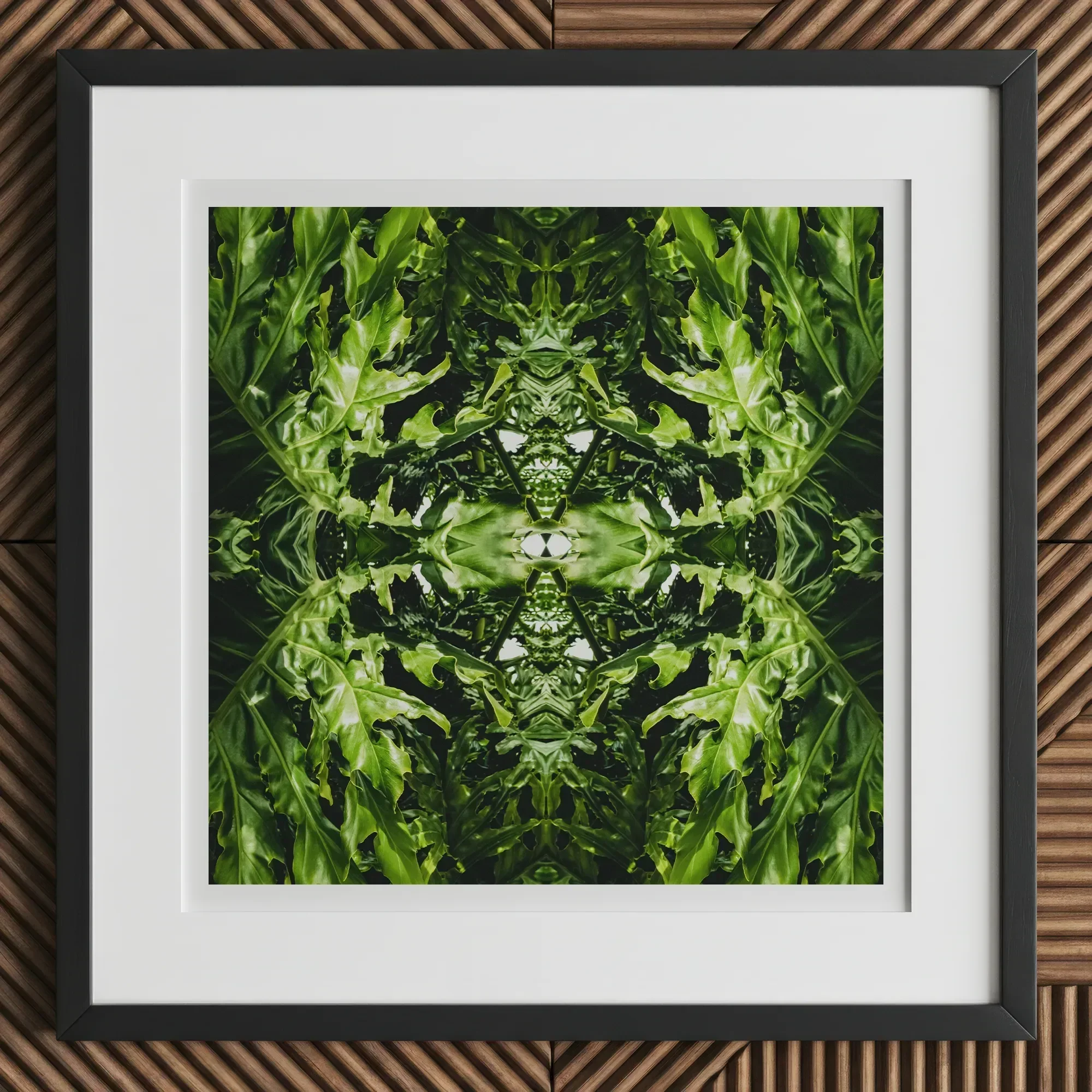 Esta impresión botánica hipnótica puede transformar su espacio en un paisaje de ensueño esmeralda alienígena. Una obra de arte fascinante que desarrolla un exuberante laberinto de follaje reflejado. Donde la manipulación digital se encuentra con el caos infundido con clorofila. Jade fronds se estira y se multiplica, creando un santuario simétrico que desafía las limitaciones dimensionales.