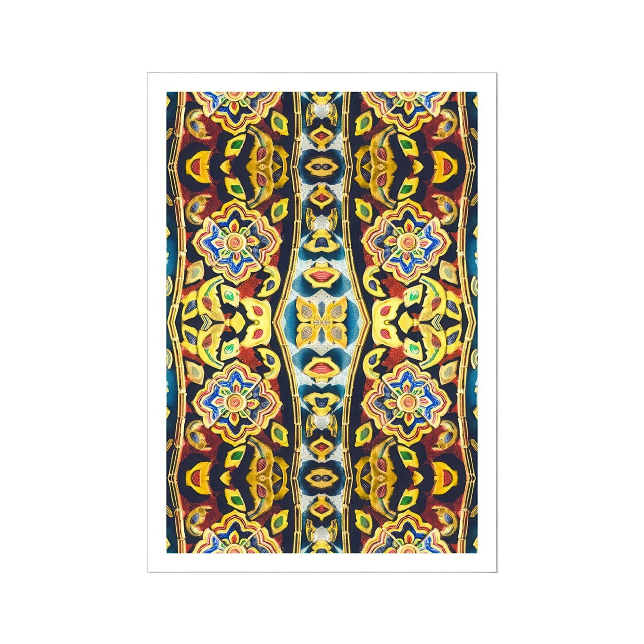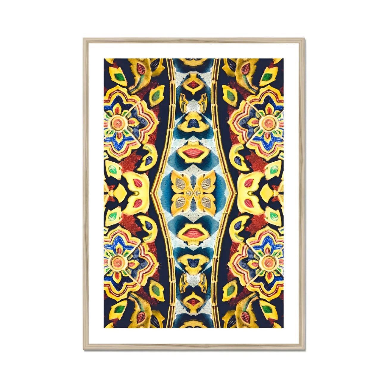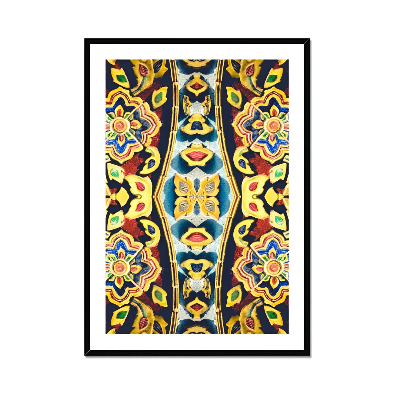 Labios carmesí en el centro susurran secretos de Siam, flanqueados por patrones que podrían ser extraídos de una épica del Ramakien o del papel tapiz de un bar go-go de Patpong. Esta impresión no solo cuelga, realiza una danza visual khon en tu pared.